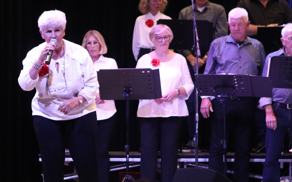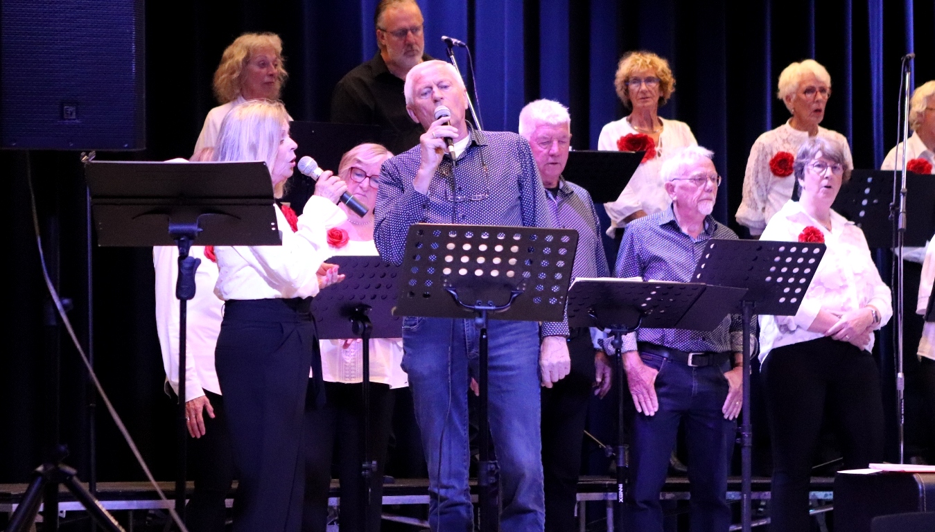 Het koor zong voor de pauze verschillende bekende nummers. Oude nummers zoals “Het is nog nooit zo donker west” van Ede Staal, met als solist Geert Dijkstra en “Help me through the night”, ook van Ede Staal en It Aldershûs, een prachtige vertolking van Tineke Dijkstra en nieuwe nummers zoals De Engelbewaarder. Ook Droomland, met als solisten Riki Mulder en Tineke Dijkstra oogstte veel waardering. Alle liederen werden door de zaal getrakteerd op een geweldig applaus.