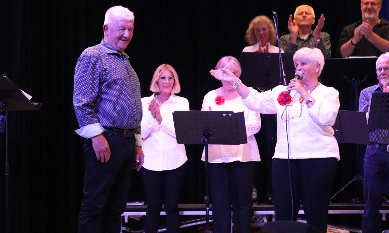 Allereerst werden de geluidsman Johannes van der Heide en zijn vrouw Willy toegezongen. Zij waren 50 jaar getrouwd. Daarna werden de dirigent en de accordeonisten José Boon en Brigitte Teijssen bedankt voor hun voortreffelijk werk. Tenslotte werd ook de Jubileumcommissie in het zonnetje gezet. Ankie Kalsbeek, Gerard Leijstra, Riki Mulder en Tineke en Geert Dijkstra, met als versterking de accordeonisten. Zij hadden ruim anderhalf jaar naar deze avond toegewerkt en mogen terugzien op een fantastische avond. Als laatste werd de familie Witteveen van De Colle in de bloemetjes gezet voor een voortreffelijke samenwerking. Het koor sloot af onder leiding van Geert Dijkstra met “It feintsje fan Menaam” en genoten tijdens de nazit van de positieve reacties.