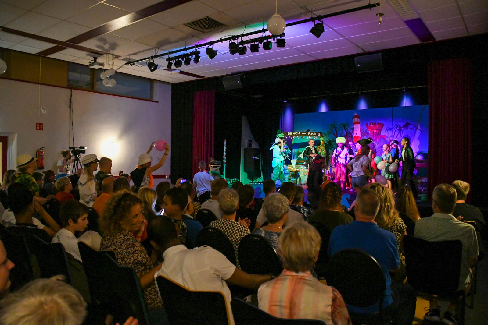 ’s Middags zijn de groepen 3 tot en met groep 7 komen kijken en ’s avonds zat de zaal vol (zo’n 180 mensen) met vaders, moeders, broers/zussen etc. Zij mochten genieten van deze geweldige musical die zich afspeelde op het eiland Albatros.