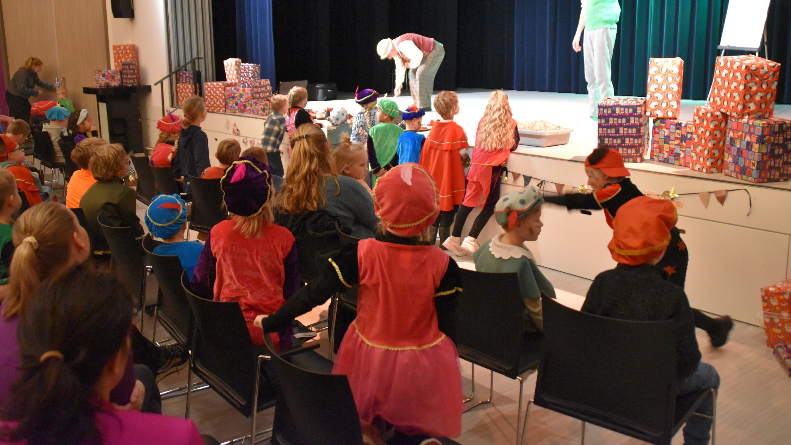 ‘s Ochtends was er een speciale voorstelling voor de cliënten van Alliade. Meer dan 90 cliënten genoten van het bezoek van Sinterklaas en zijn Pieten. Later, vanaf 14:00 uur, waren de kinderen uit de groepen 1 tot en met 4 van de basisscholen in Kollum aan de beurt. De spanning was om te snijden: zou Sinterklaas ook dit jaar weer naar Kollum komen? Tijdens de voorstelling vertelden Plut en Pier een spannend Sinterklaasverhaal en beleefden ze allerlei avonturen. Tot ieders verrassing verscheen er ineens een groot cadeau op het toneel. Wat zou daar in zitten?