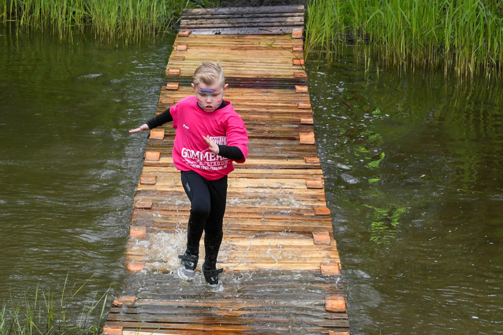 Over de gehele parcourslengte door het dorp en de omringende weilanden en sloten waren tientallen hindernissen gebouwd door de vele vrijwilligers die actief zijn voor de organisatie. Bij de recreatieve run waren ook dit jaar weer twee afstanden, dik 8 kilometer en de 4 kilometer. De recreatieve run is vooral voor plezier en is een superleuke activiteit op Koningsdag om met het gezin of als vriendengroep te ondernemen. Bij de wedstrijdrun werd er weer gestreden voor de beste tijd en hierbij moeten alle hindernissen op de juiste manier uitgevoerd worden.