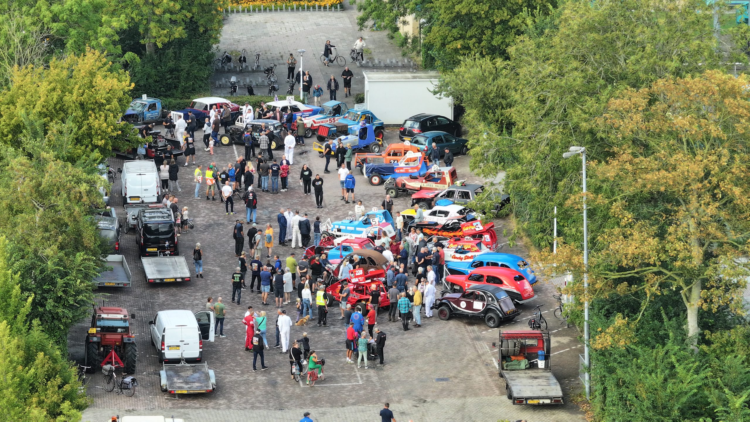 HALLUM – Brullende V8-motoren, de geur van benzinedampen en heel Hallum en omstreken op de been. Het crossweekend van Hallum is donderdagavond met een speciale reünie-ronde begonnen. “Der ride hjir crossauto’s om, dy’t echt hiel âld binne”, vertelt Marco Kramer die de reünie organiseerde.