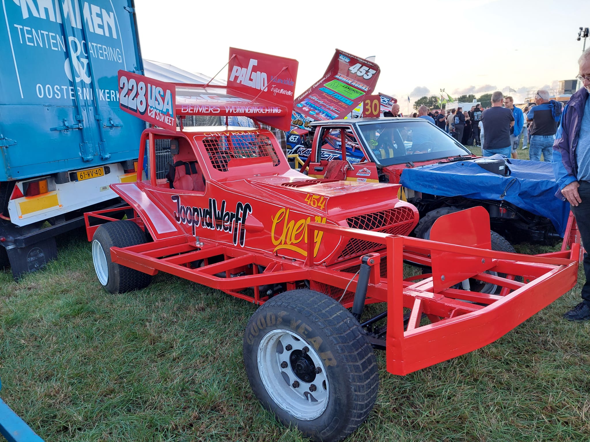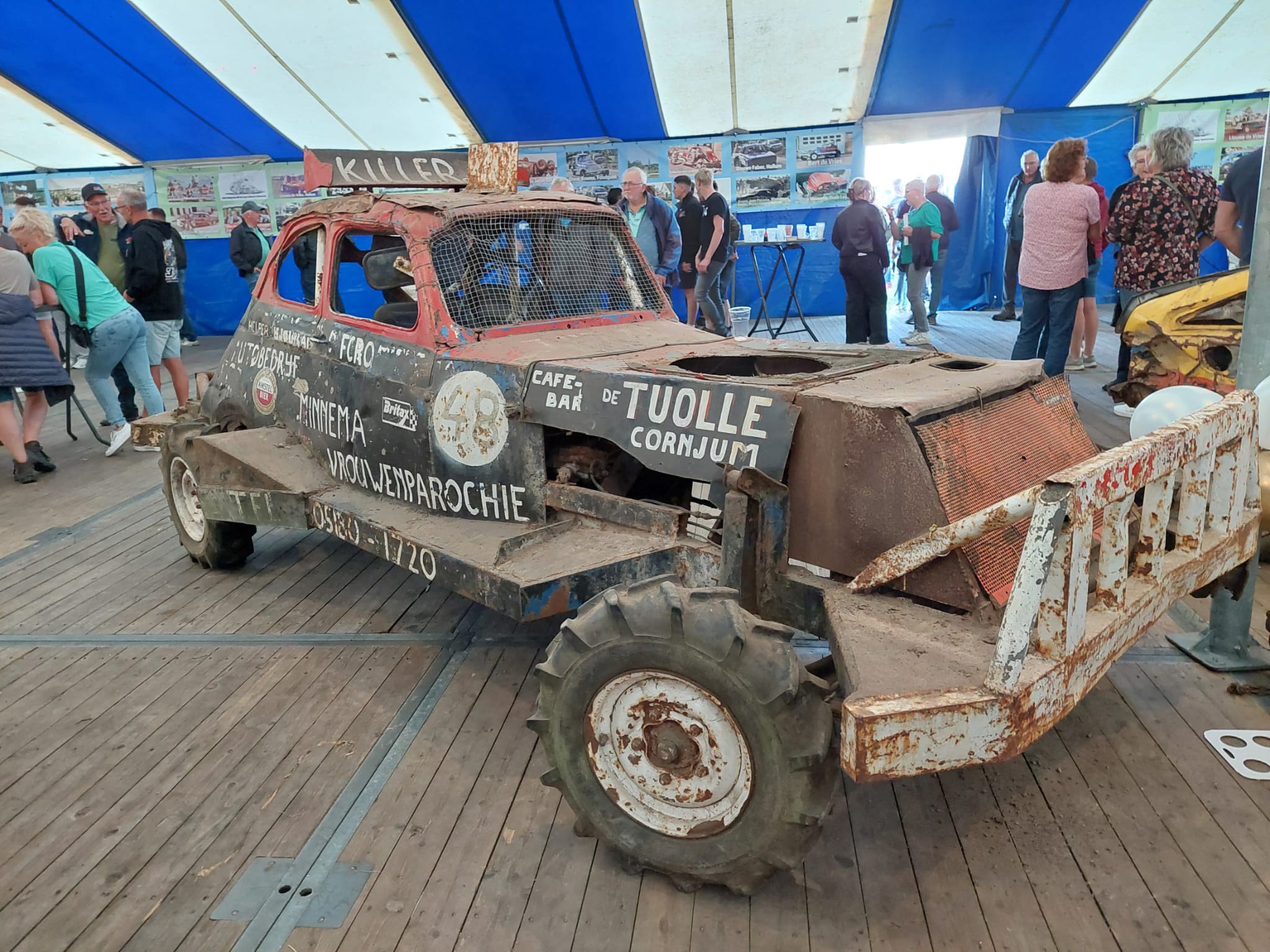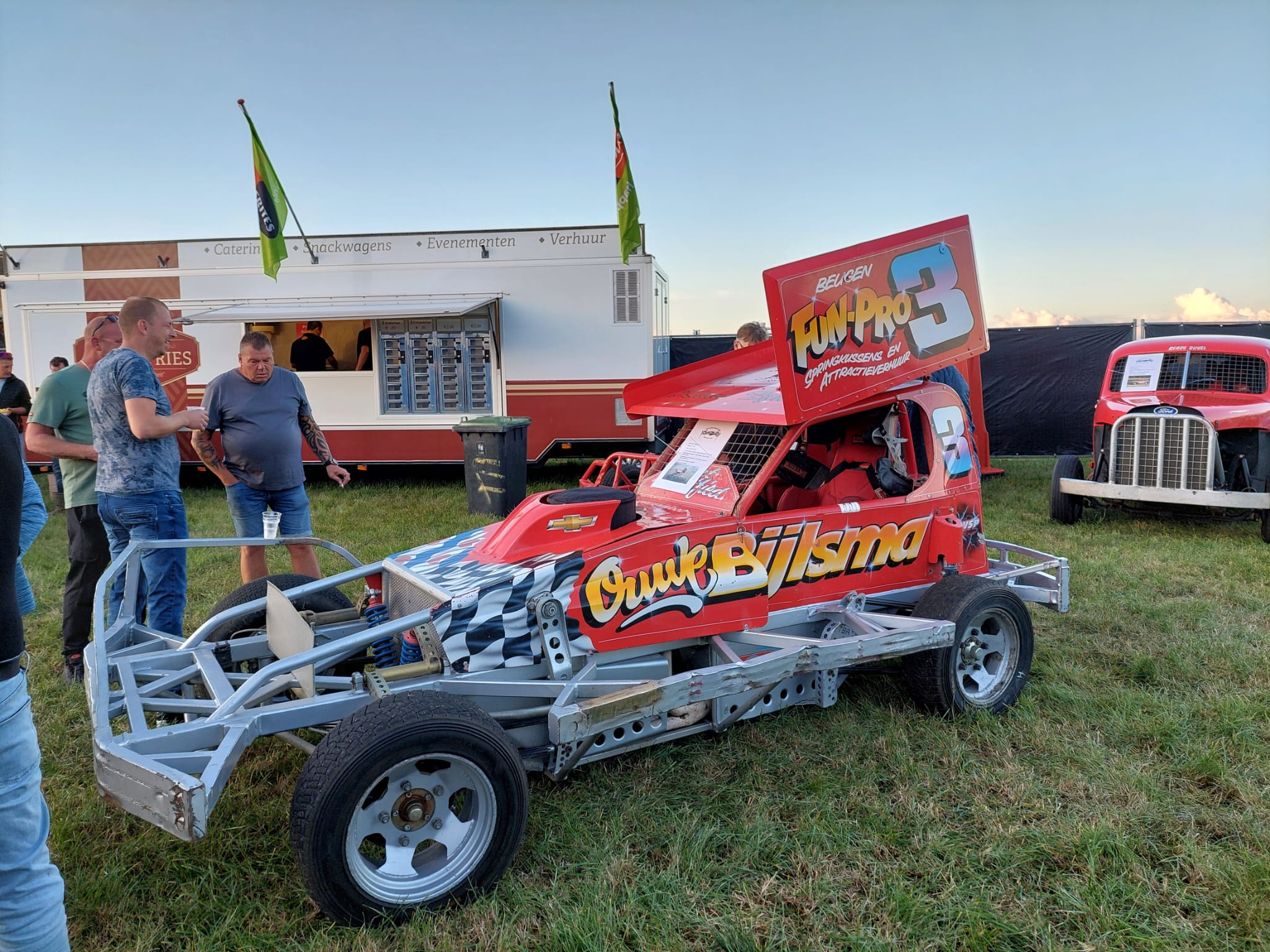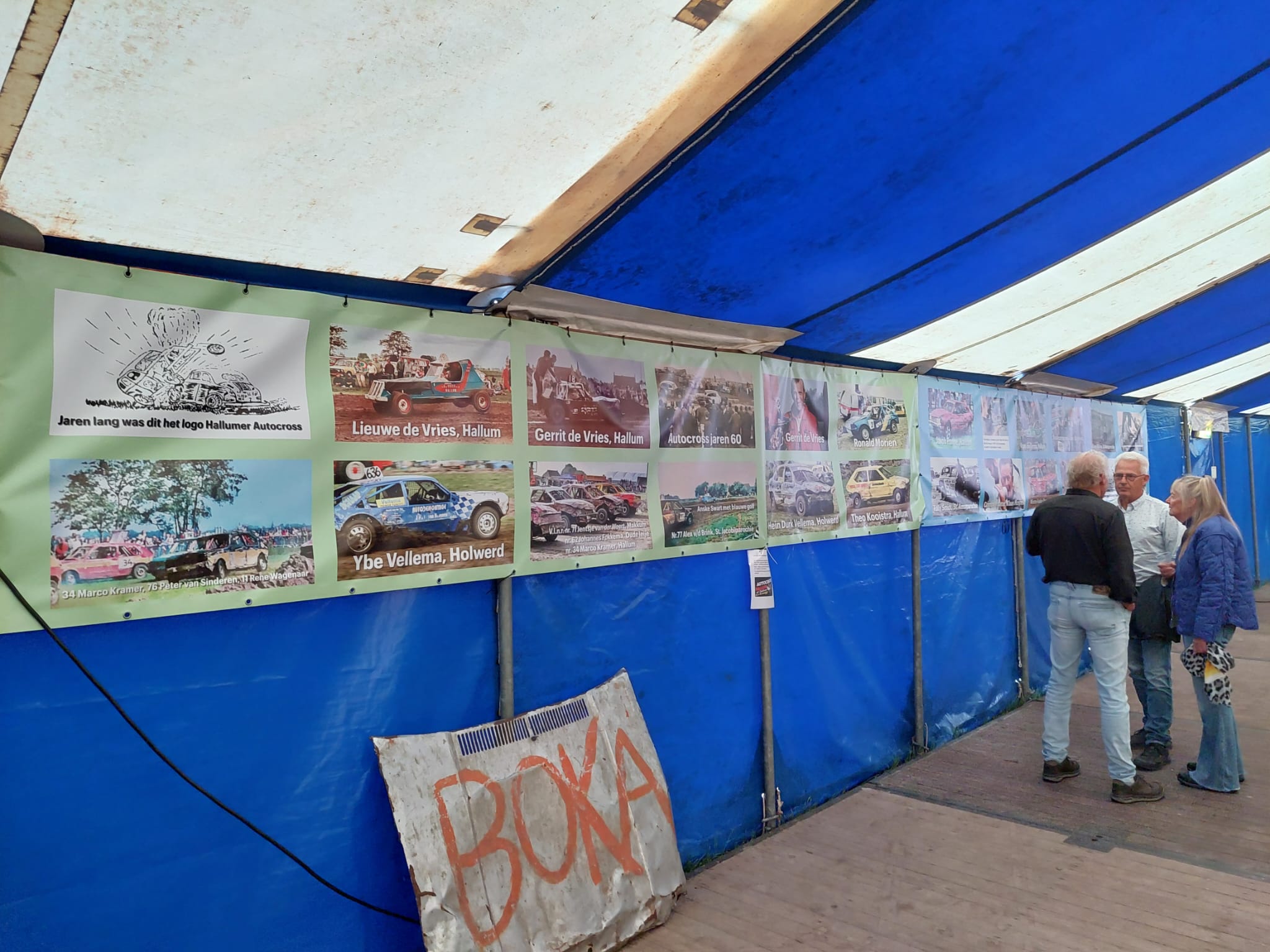 In de tent op het crossterrein aan de Zuidermiedweg zijn foto’s, auto’s en unieke filmbeelden uit verschillende decennia autocross te zien. Een verrassende toevoeging aan het donderdagavondprogramma was de aanwezigheid van schaatster Marijke Groenewoud. Zij reed eveneens in een crossauto. “Ik ha dizze wike foar it earst oefene en dat gie wol aardich, hjoed is der my ek mar 2 kear útfallen”, lacht Groenewoud.