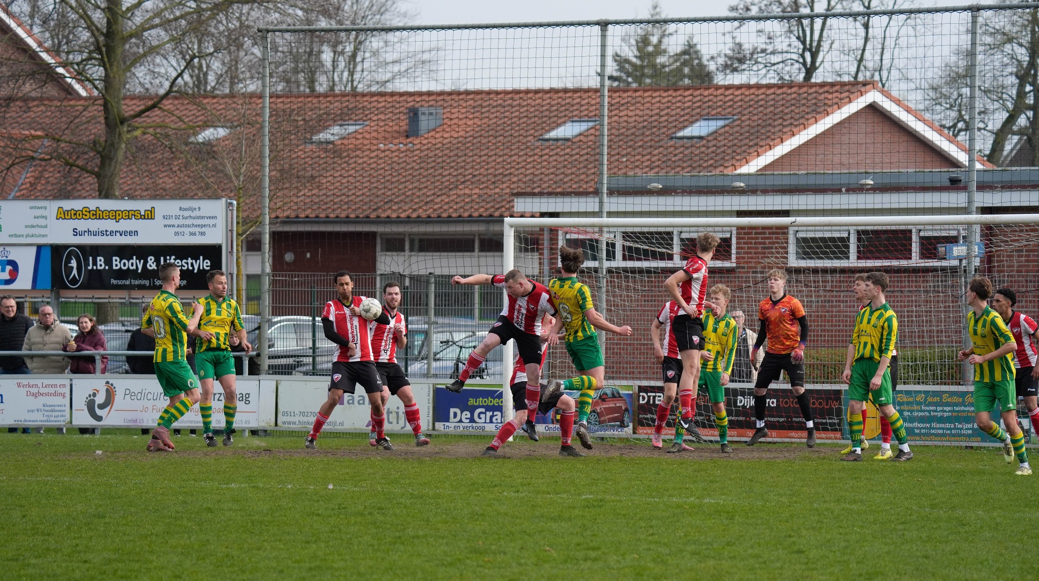 Best is het allemaal niet als de Steenwijker arbiter Dobma rond de klok van half drie het duel in gang heeft gebracht. Friese Boys doet wat het kan en zoekt het succes via de snelle omschakeling. Verder dan speldenprikken van de lichtste categorie komen de rood-wit gestreepten niet. Harkema probeert er voetballend doorheen te komen. Ook dat lukt mondjesmaat. Er zitten nogal wat onzorgvuldigheden in het spel van de Harekieten. Pas als de klok het kwartier is gepasseerd nemen de bezoekers het heft stevig in handen en duiken steeds vaker voor het doel van keeper Komrij op. Diezelfde Komrij voorkomt na achttien minuten de openingstreffer als hij Paul van der Heide na een één-tweetje met Hille Postma alleen voor zich op ziet duiken.