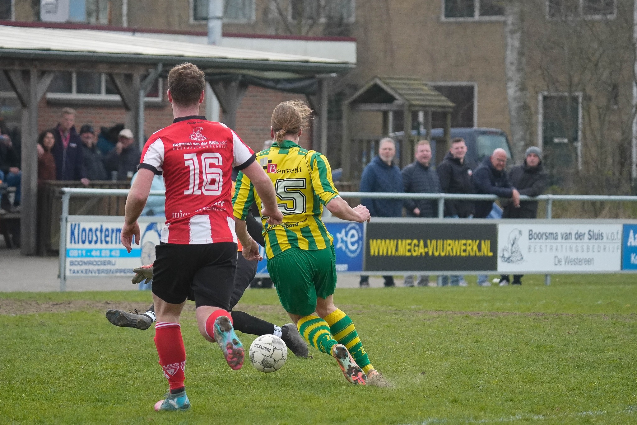 Harkema draait de duimschroeven verder aan en na 25 minuten is het raak. Een combinatie tussen Roan Alssema en Aize Storm lijkt te stranden, tot Storm vanaf twintig meter ineens het doel onder vuur neemt. Met een boog zeilt het leder over keeper Komrij in de touwen, een fraai staaltje van klasse en inzicht van Storm. Vijf minuten later heeft de goalgetter zijn tweede doelpunt te pakken. Een afstandsschot van Roan Alssema wordt in het drukke strafschopgebied van Friese Boys geblokt. Jesper Hoeksma gaat met de bal aan de haal en wordt net binnen de lijnen van het zestienmetergebied duidelijk hoorbaar geschept. Strafschop, oordeelt arbiter Dobma. Aize Storm is koel en schuift het speeltuig keurig in de doelhoek waar goalie Komrij niet naar toe duikt. Zeven minuten later komt Friese Boys tot de grootste kans van het eerste bedrijf. Jurjen de Boer slingert de bal voor het Harkema-doel, de vogelvrij staande Pier Kempenaar werkt de voorzet van dichtbij naast.