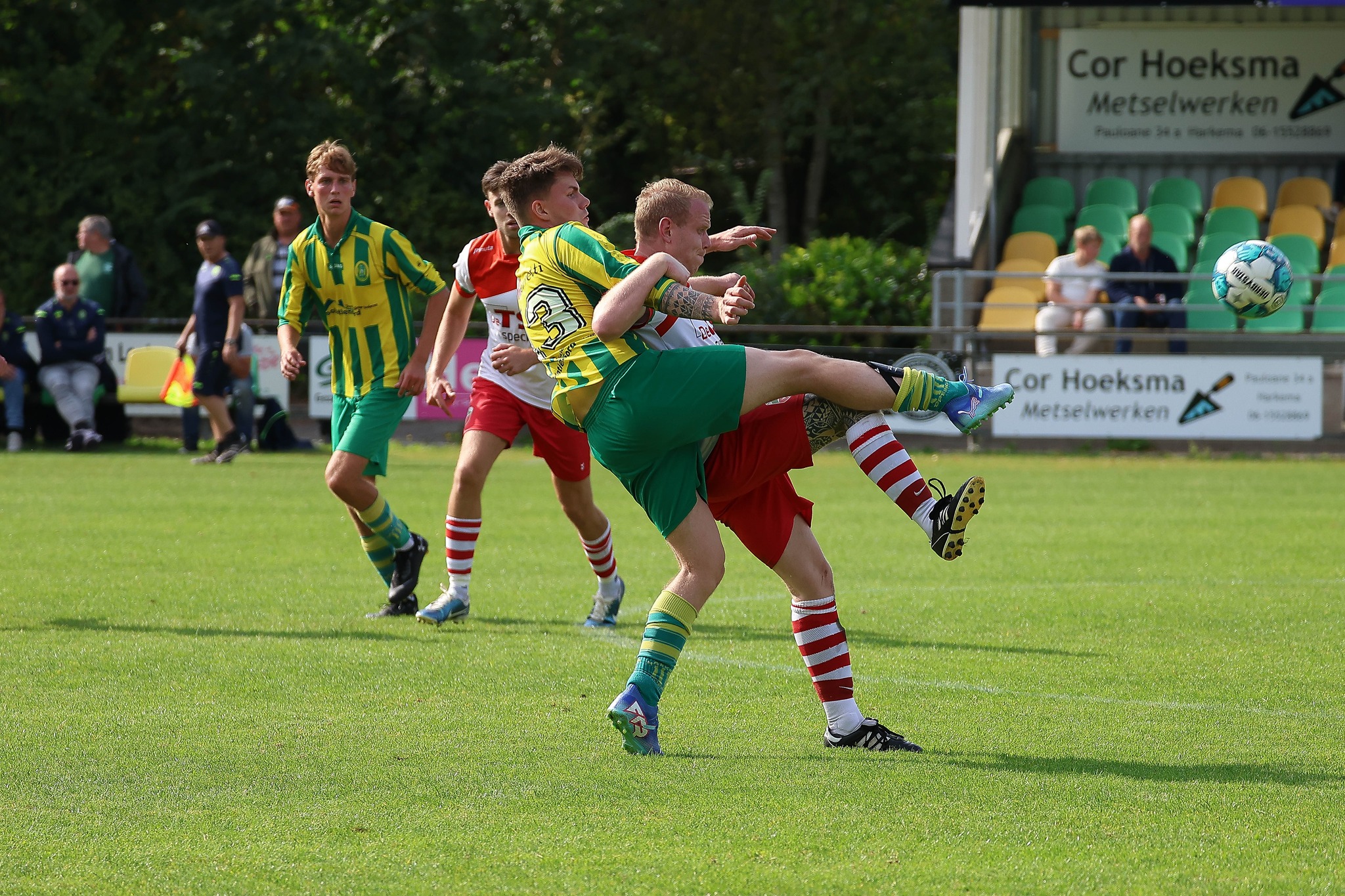 HARKEMA – Op eigen veld heeft Harkema-Opeinde zich zaterdagmiddag probleemloos weten te plaatsen voor de knock out-fase van het bekertoernooi. Op voorhand was bekend dat een punt zou volstaan in de als uitwedstrijd te boek staande streekderby tegen ASC. Met een 1-3 ruststand leek dat punt al voor de helftwisseling veiliggesteld. Toen het elftal van ASC vlak na de rust werd gereduceerd tot een tiental gloorde er een monsterscore. Na de betrekkelijk eenvoudige bekerzeges van de voorbije weken ontbrak het “De Heide” aan de drang om de tegenstander naar een ruime nederlaag te spelen. Het bleef derhalve bij 1-3.