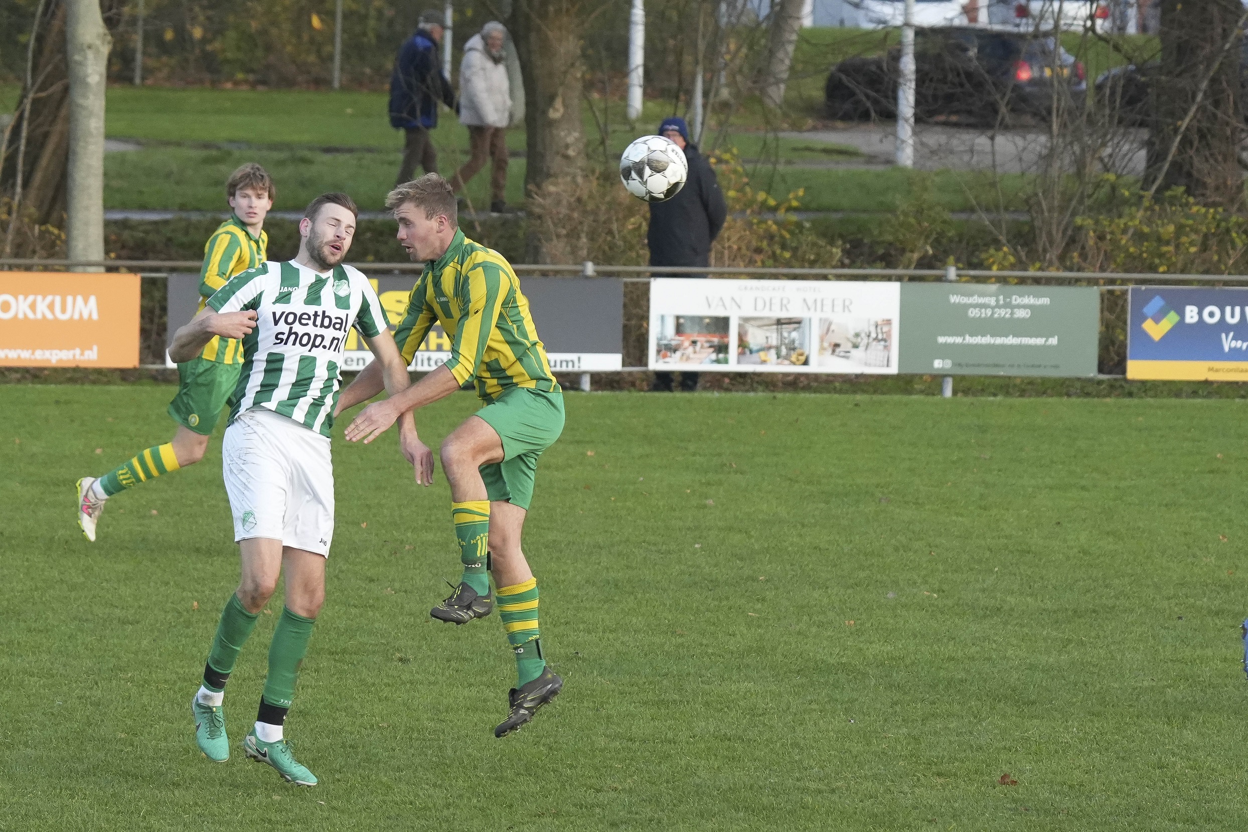 Dokkum tegen Harkema-Opeinde ontwikkelt zich van meet af aan in een wedstrijd met een behoorlijk tempo. Aan Harkemaster zijde staat het in positioneel opzicht aanvankelijk beter. Na een kwartier resulteert dit na een prima aanval in de 0-1. Twan Polder speelt Paul van der Heide in, die het spel direct verplaatst naar de andere kant van het veld. Hier wordt de bal opgepikt door Roan Alssema. De Peender aanvaller speelt Hille Postma aan, met een steenharde uithaal in de korte hoek knalt Postma raak. Harkema houdt de voorsprong redelijk eenvoudig intact. Dat het na 38 minuten toch 1-1 wordt is te danken aan een te korte terugspeelbaal waarvan door Durk van der Veen dankbaar wordt geprofiteerd. In de 44ste minuut is er voor de bezoekers een nieuwe tegenvaller. Omer Dahir wordt in aan de zijkant van het strafschopgebied onnodig gevloerd. Patrick van der Velde verzilvert de terechte elfmetertrap die volgt, al zit goalie Martin Alma er dicht bij. Is een 2-1 achterstand vervelend genoeg, het wordt voor de Bosk-bewoners voor de helftwisseling nog akeliger: diep in blessuretijd knikt de fysiek sterke Patrick van der Velde een vrije van Giomar Anastatia tegendraads in de touwen.