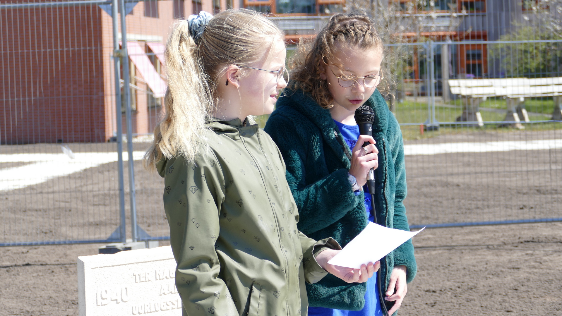 Zes kinderen van iedere school hebben tijdens de herdenking zelfgemaakte gedichten voorgelezen en bloemen gelegd. Leerkracht Rinskje Braaksma speelde de Last Post en het Wilhelmus.