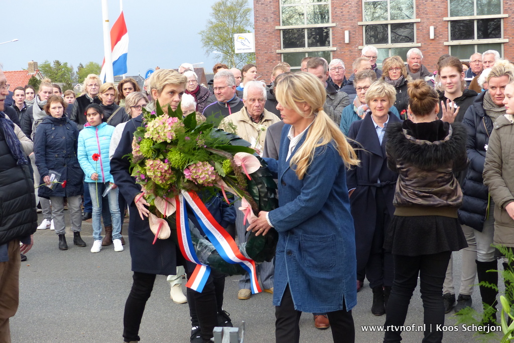 Er werden kransen gelegd namens het gemeentebestuur van Dantumadiel door burgemeester Sicko Heldoorn, zijn partner en leerlingen van de Wingerd. Namens de bevolking van Dantumadiel door Johannes Haakma en Nel Vastbinder van Mei Inoar ien en leerlingen van de Wingerd. Namens adoptieschool De Fontein door Ale –Jan Wijma en Siebren Boltjes en leerlingen van de Fontein. Namens Dorpsbelang Feanwâlden door Annelien Stavorinus en Elske Betten. Namens de oud militairen in Dantumadiel door de heer Andries Bijlstra, zijn pakesizzers Andries Rozema, Gerda Rozema- Bijlstra en Tineke Rozema-Bijlstra.