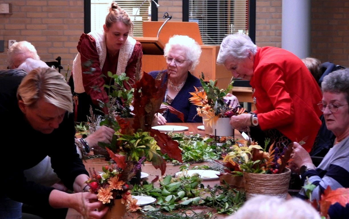De activiteiten werden zoveel mogelijk aangepast aan de ouderen, met natuurlijke materialen zoals dennenappels, takjes, bladeren, kastanjes en eikels. Ook gebruikte men felle kleuren zoals rood, oranje en geel, omdat deze beter zichtbaar zijn voor ouderen. Dit gebeurde met een mix van materialen of door te kiezen voor kleurrijke bloemen die in de herfst bloeien. Zo ontstonden creatieve bloemstukken die de ruimte een frisse, herfstachtige sfeer gaven.
