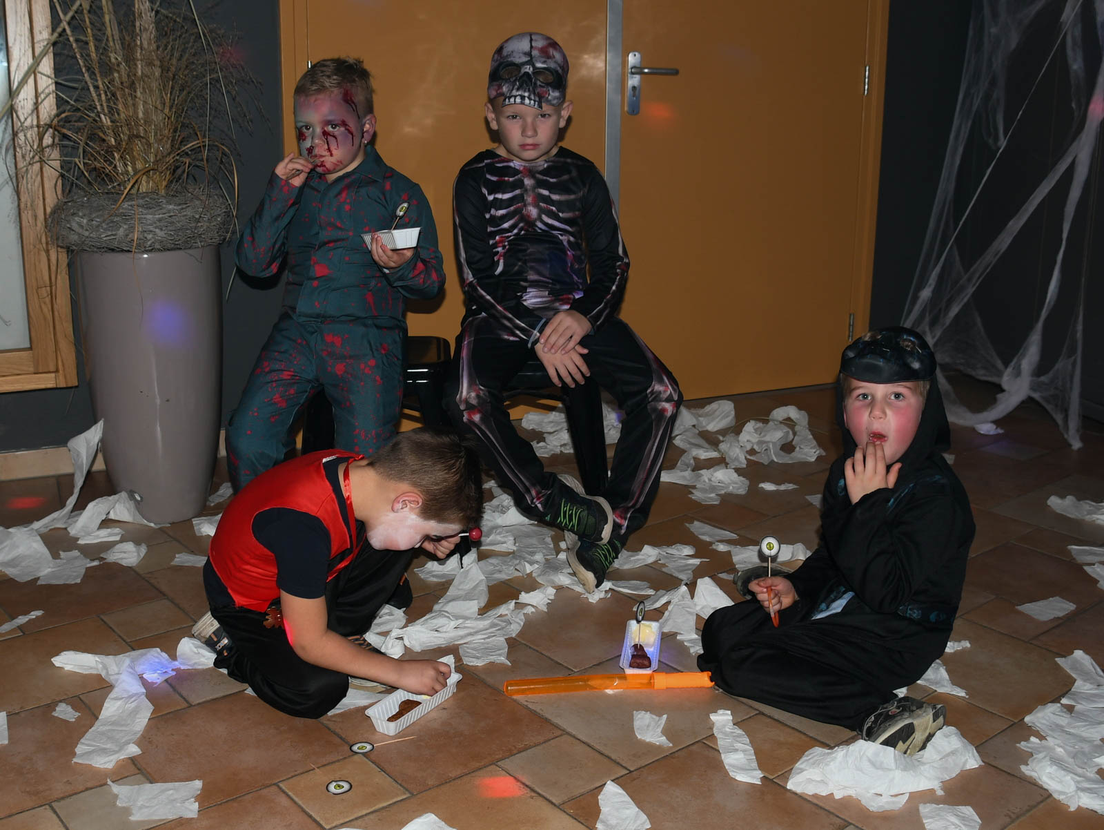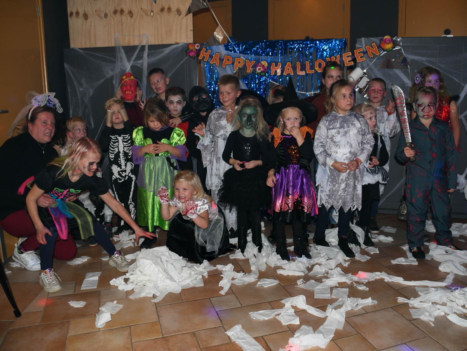 OUDWOUDE – Vrijdagavond was de zaal in Husterwâld in Oudwoude omgetoverd in Halloweensfeer. Het griezelde er behoorlijk, er hingen grote spinnenwebben, er was een heksenketel enge spinnen en skeletten. Er liepen heksen, zombies, clown-it, harley quinn, joker, vampier, spoken en nog veel meer griezels rond.