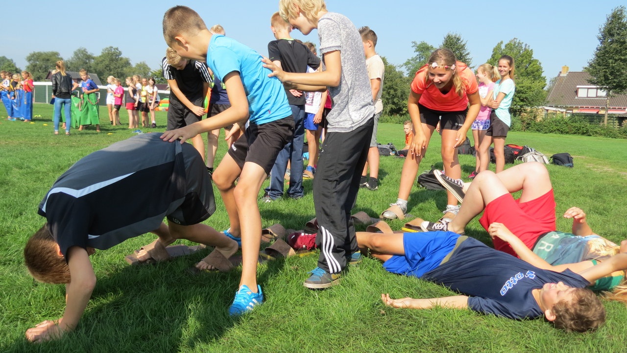 Kersverse brugklasleerlingen van het Lauwers College in Buitenpost strijden tijdens de zeskamp om de beste klas te worden. Tijdens de introductieweek staat alles in het teken van kennismaken, groepsvorming en samenwerken.