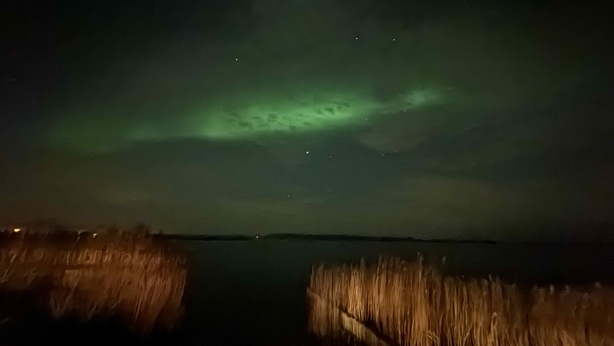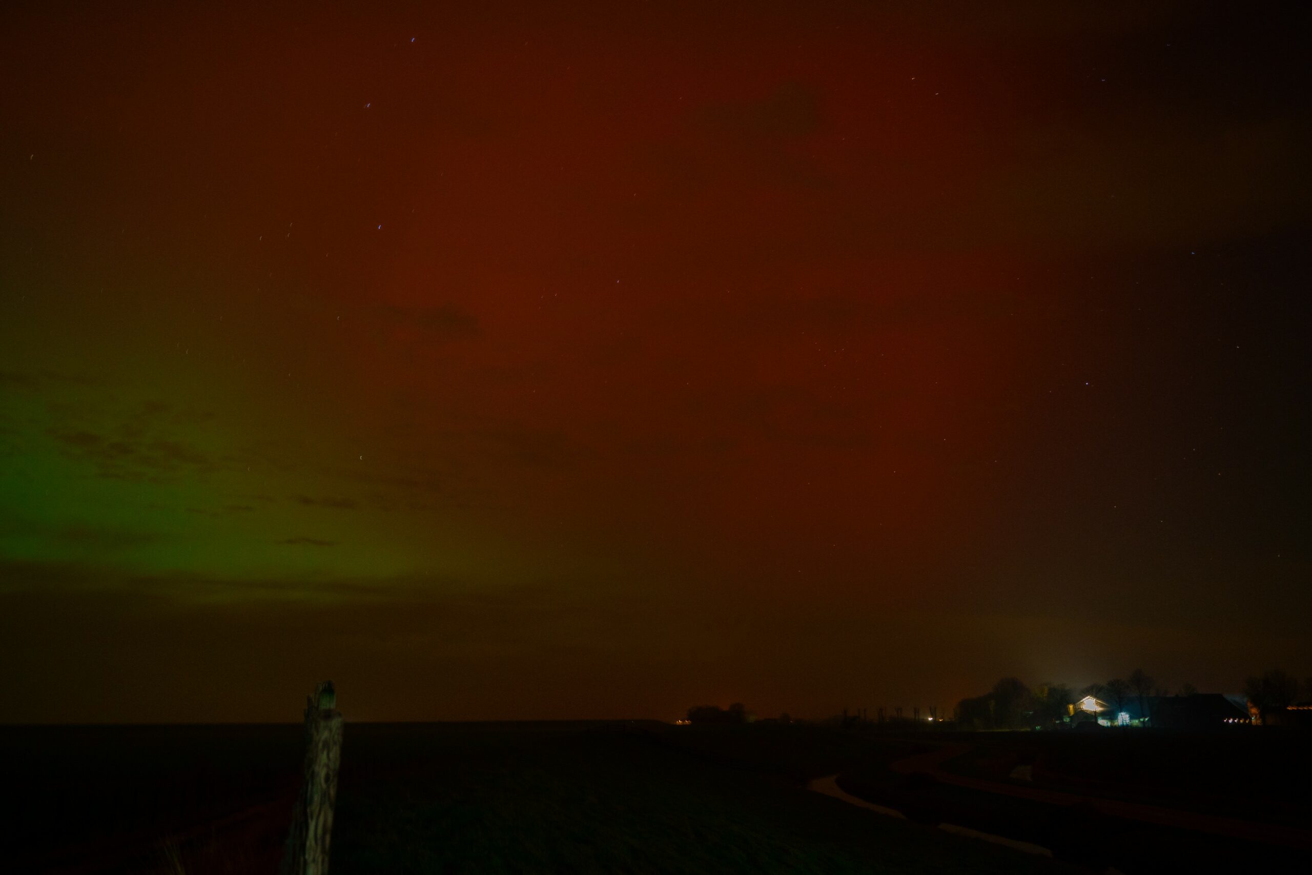 NOORDOOST-FRYSLÂN – Op veel plekken in Noordoost-Fryslân is maandagavond het noorderlicht te zien geweest. Hoe dichter bij de noordpool, hoe groter de kans om het noorderlicht te zien. Bij sterke zonne-uitbarstingen is de groen-rode gloed ook in Nederland zichtbaar.