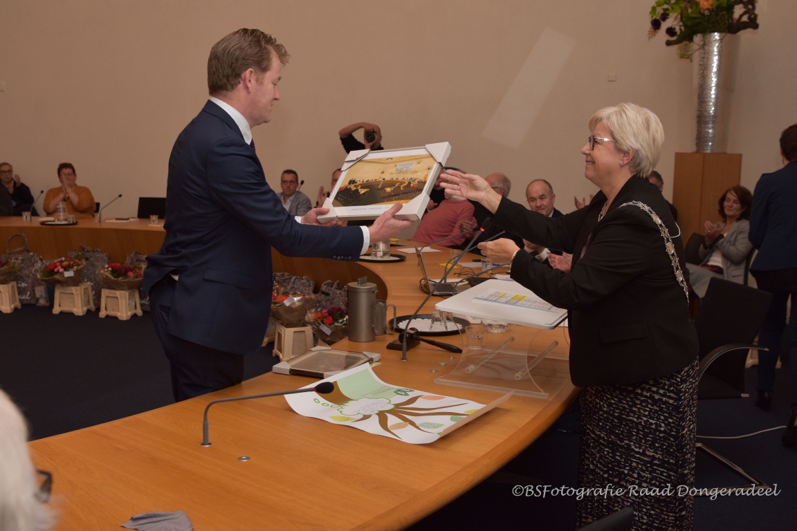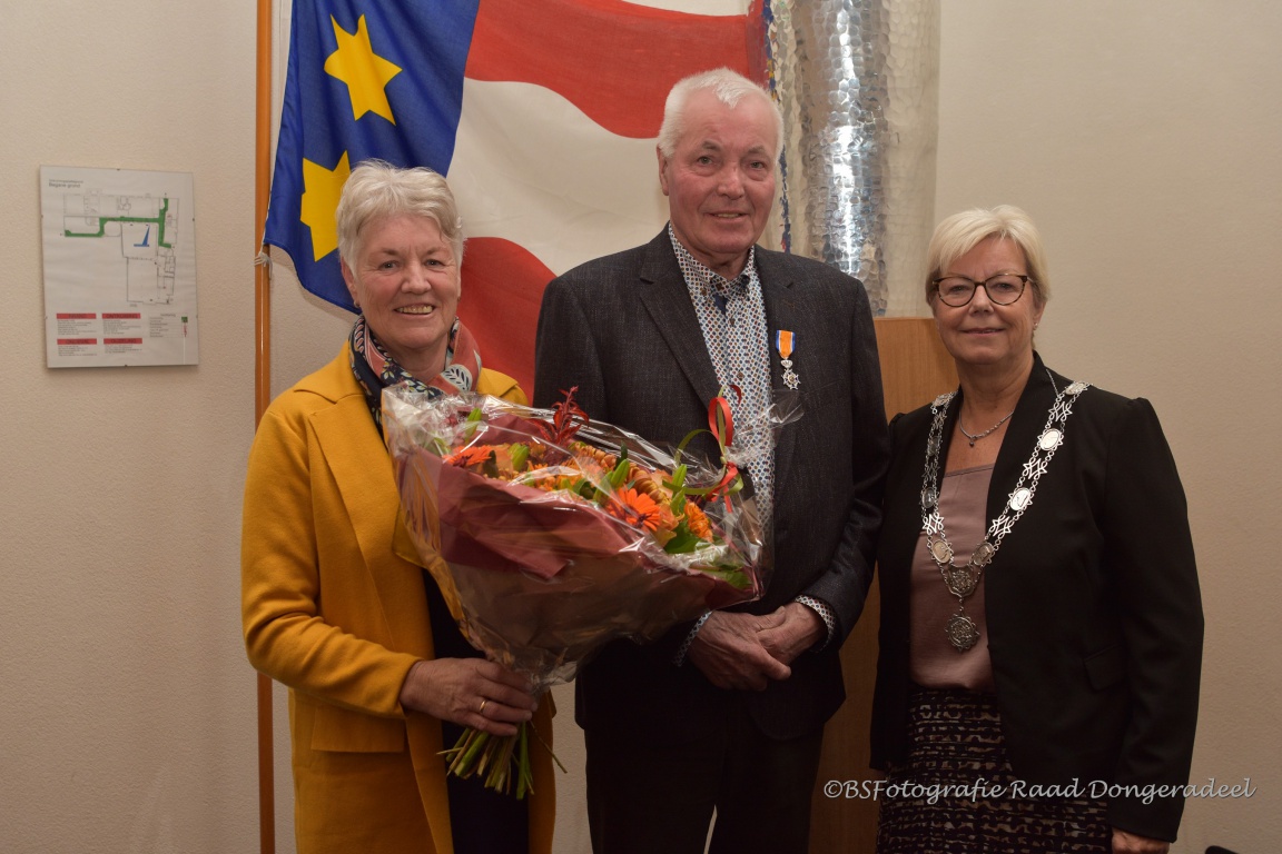 Burgemeester Magda Berndsen nam in kort slotwoord nog de vrijwillige inzet van de raadsleden voor en korte of al langere tijd in de gemeenteraad. Een persoon die al drie raadsperiodes lid was van de raad is Martinus Hiemstra (71) uit Ternaard. Voor de vervulling van deze taak ‘Heeft het zijne Majesteit behaagt’ Martinus Hiemstra te benoemen tot Lid in de Orde van Oranje Nassau. Martinus Hiemstra was raadslid voor het CDA van 2 mei 2002 t/m 14 maart 2006, 5 december 2008 t/m 27 maart 2009 en van 11 maart 2010 t/m 31 december 2018. Daarnaast was het lid van het college van beheer van de PKN gemeente Ternaard en bestuurslid van de begrafenis vereniging ‘De Laatste Eer’ van Ternaard. De heer Hiemstra kreeg de Koninklijke versierselen uitgereikt door waarnemend burgemeester Magda Berndsen van de gemeente Dongeradeel, tijdens de laatste raadsvergadering in de oude samenstelling. Per 1 januari 2019 fuseert de gemeente Dongeradeel met de gemeenten Ferwerderadiel en Kollumerland c.a. tot gemeente Noardeast-Fryslân.