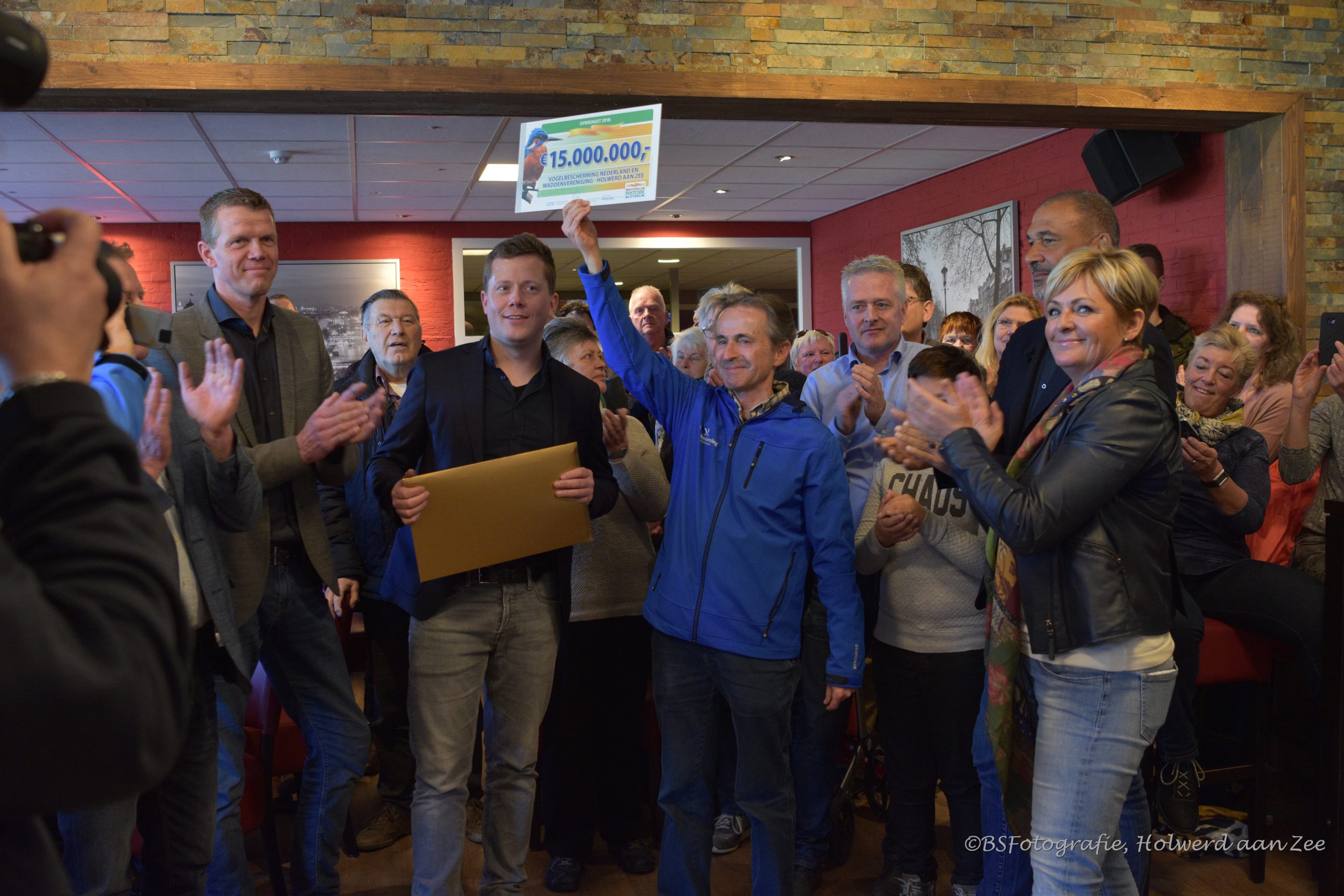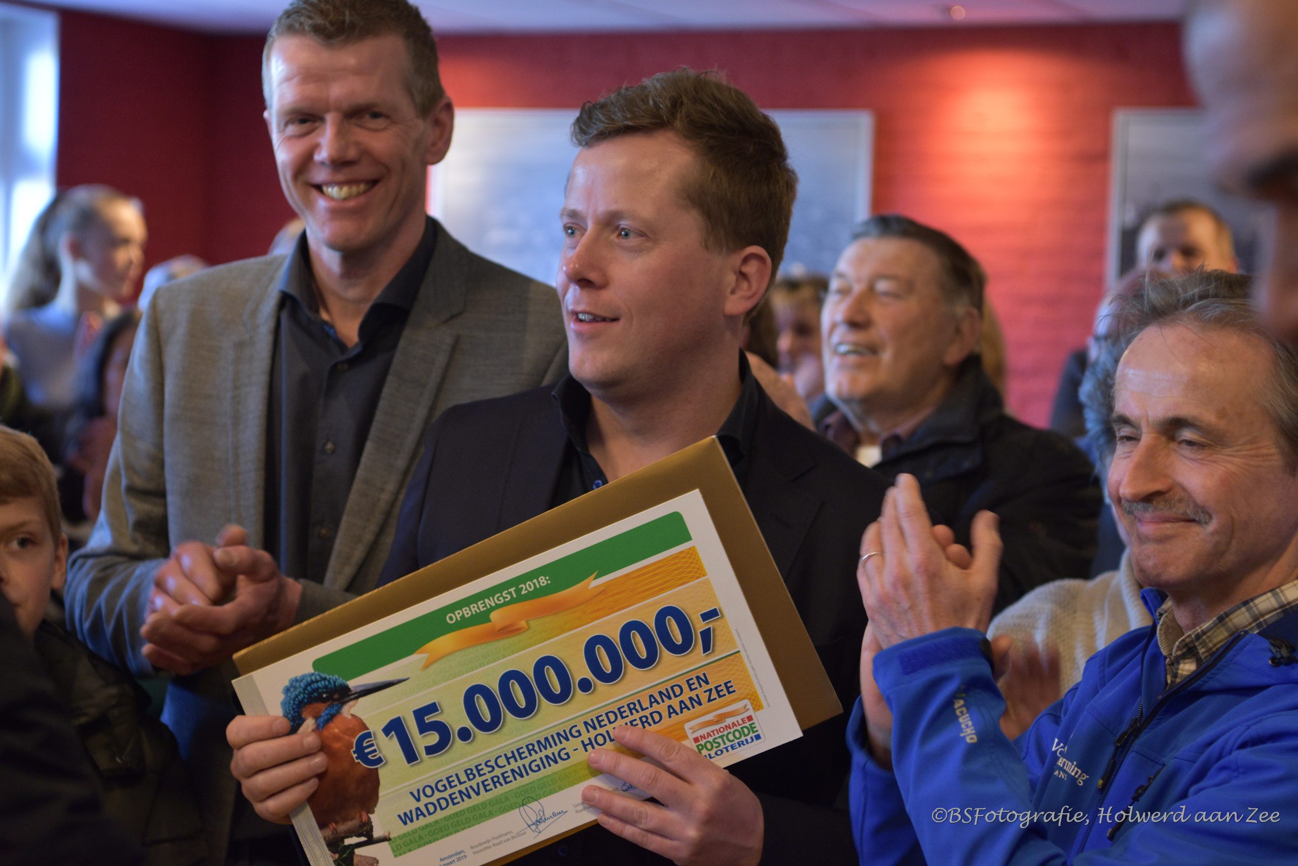 Vrijdag overhandigden Ruud Gullit en Caroline Tensen als ambassadeurs van de Postcode Loterij een cheque van 15 miljoen euro aan Fred Wouters van de Vogelbescherming Nederland samen met Marco Verbeek van Holwerd aan Zee openden zij de envelop voor een enthousiaste groep inwoners van Holwerd.