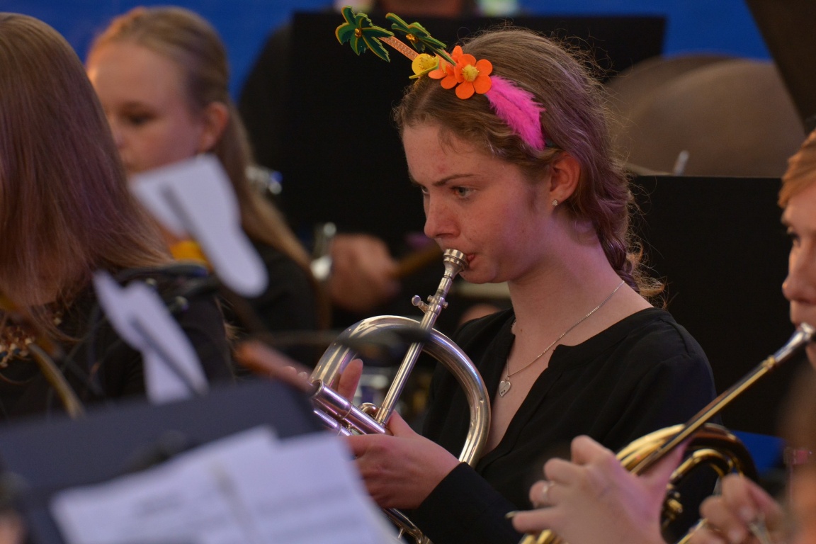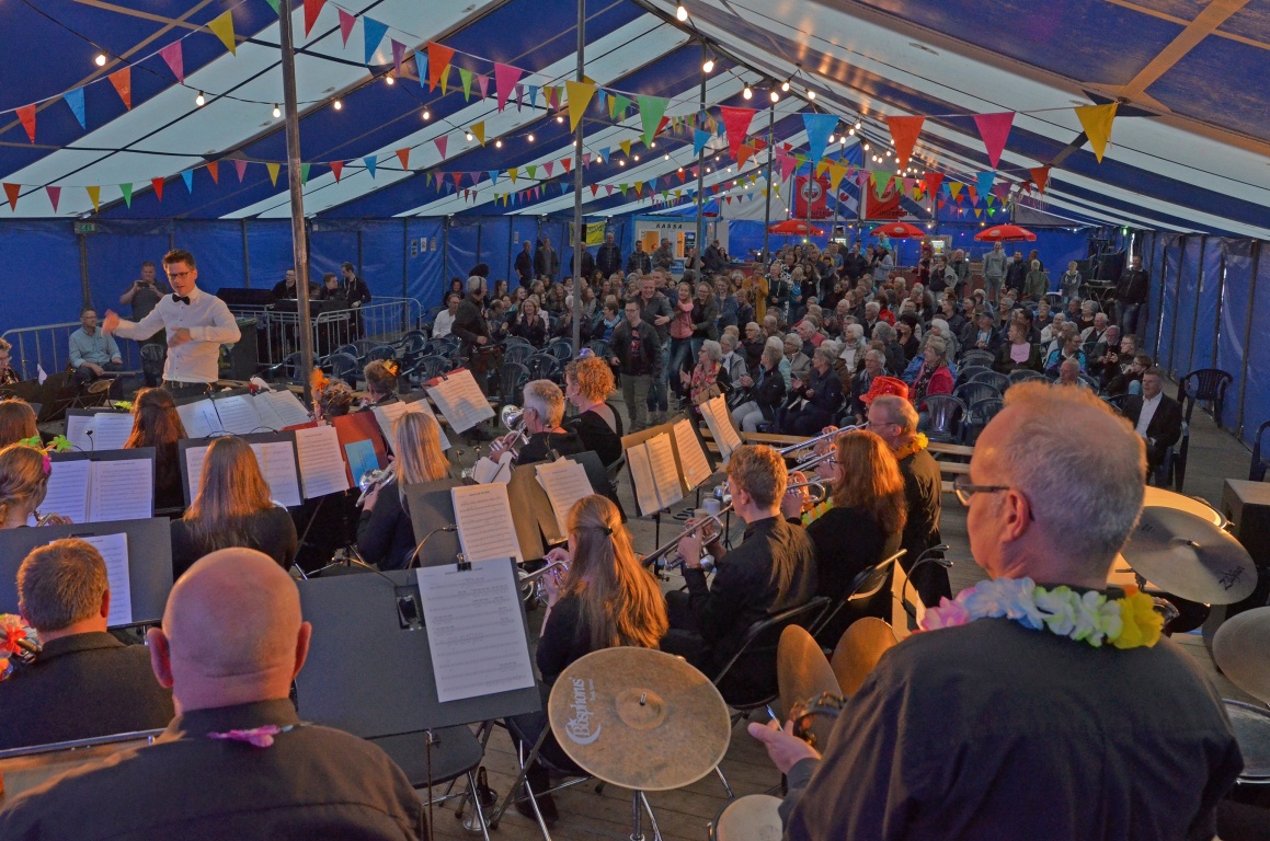 Vrijdagavond lieten de beide fanfares van zich horen tijdens het Holwerter fanfares@Wallstreet concert. De beide korpsen, De Bazuin en Crescendo bezetten met 60 deelnemers een groot deel van het extra podium in de feesttent. Met een muzikale mix an pop, rock en Nederlandstalig wisten de beide dirigenten, Johan Postma en Durk Krol de tent in beweging te brengen. Daarbij werden ze geholpen door de band Wallstreet die enkele nummers gezamenlijk met de fanfares ten gehore brachten.