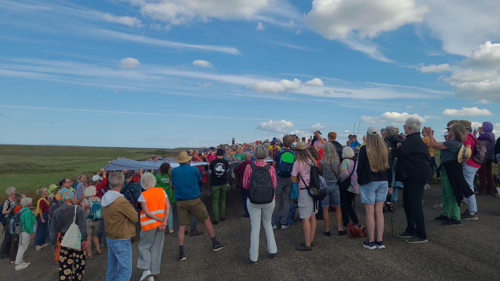 Honderden mensen demonstreren bij Holwert tegen gaswinning onder Waddenzee