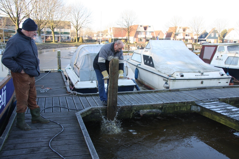 Door de onregelmatige afstroming van het boezemwater was de ijsvloer in jachthaven “de Rijd” te Kollum tot gemiddeld 12 cm gegroeid. Ten gevolge van de enorme uitzetting van het ijs werden steigers en meerpalen omhoog gedrukt .
