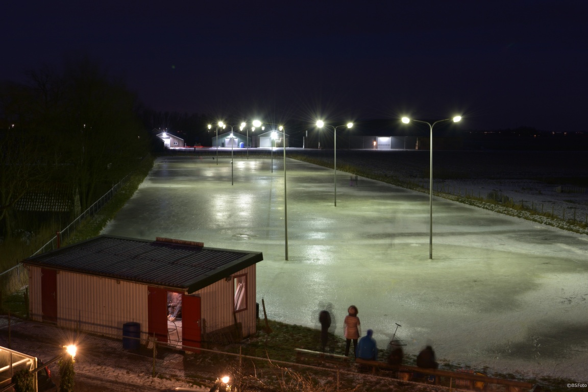 De ijsbaan ligt aan de Holwerterdyk, inrit naast nr. 11 en parkeren aan de overzijde van de Holwerterdyk. Vrijdag worden ook weer veel bezoekers verwacht, die voor een rondje schaatsen langs komen.