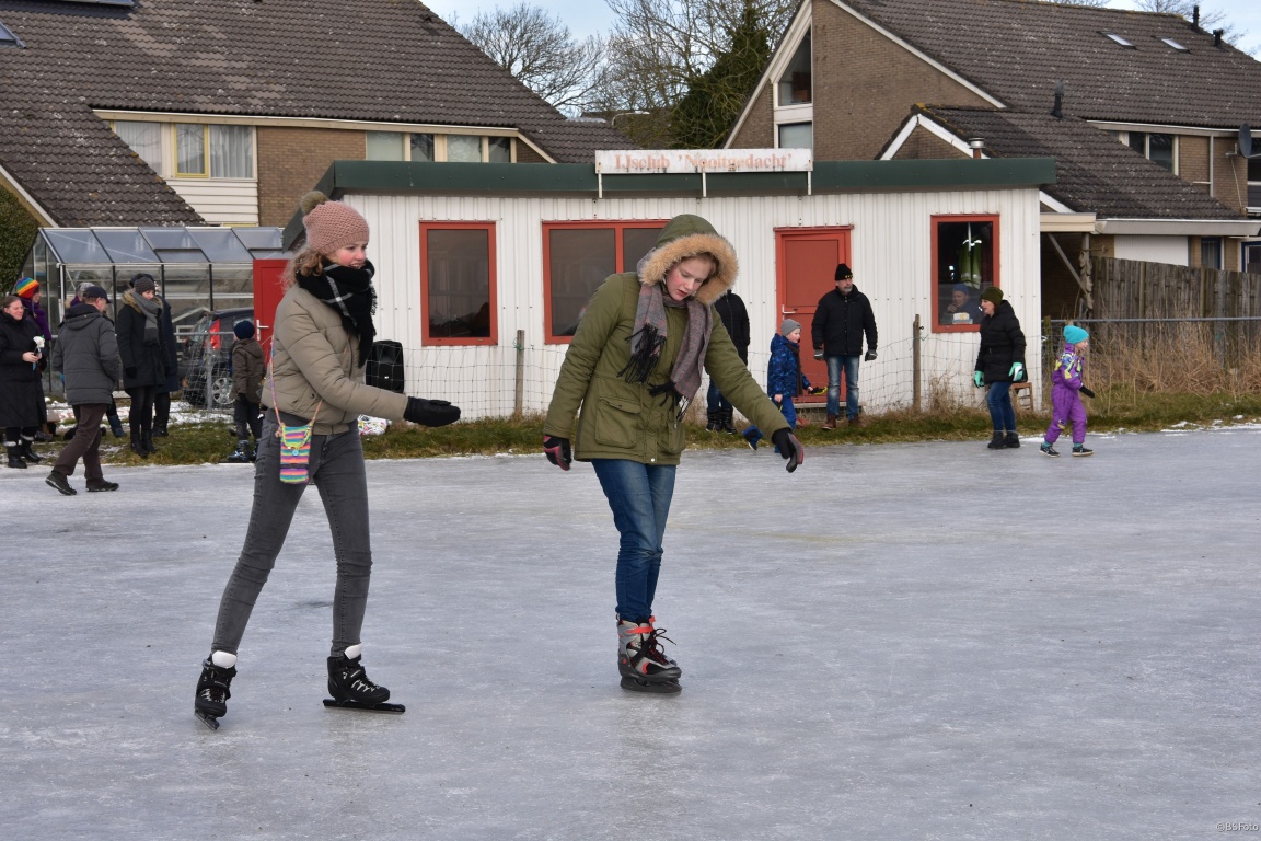 De ijsbaan van ijsclub Nooitgedacht is donderdag open gegaan. Na het meten kwamen de bestuursleden tot 7 cm ijsdikte en vonden zij het tijd om de baan open te stellen voor kinderen en volwassenen.