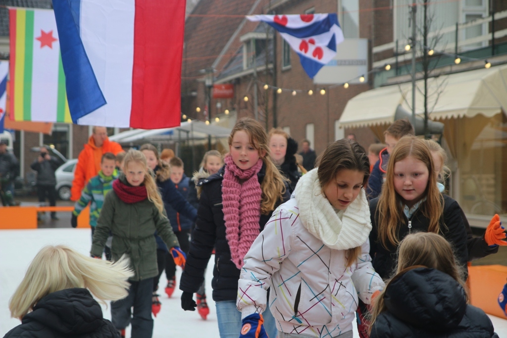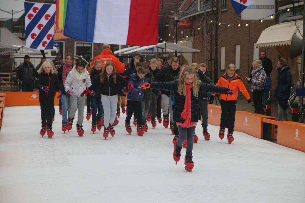 Reinier Paping ging een interactie aan met de schaatsers en vroeg hen o.a. te laten zien wat ze vanmorgen geleerd hadden. Door 24 kinderen werd er een schaatsdemo gegeven.