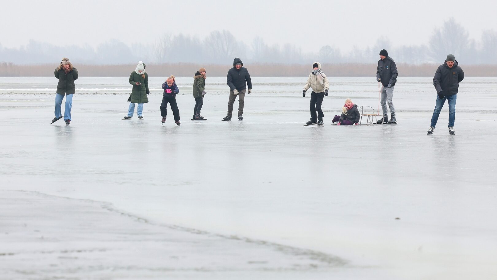 Zondag zijn er op verschillende plekken in Fryslân schaatsers gesignaleerd. In de Ryptsjerksterpolder en bij Ezumakeeg waagden mensen zich op het ijs. Vooral op ondergelopen weilanden is voorzichtig schaatsen mogelijk. Toch is het oppassen geblazen: op veel plekken zitten nog windwakken in het ijs. Dat maakt het schaatsen gevaarlijk.
