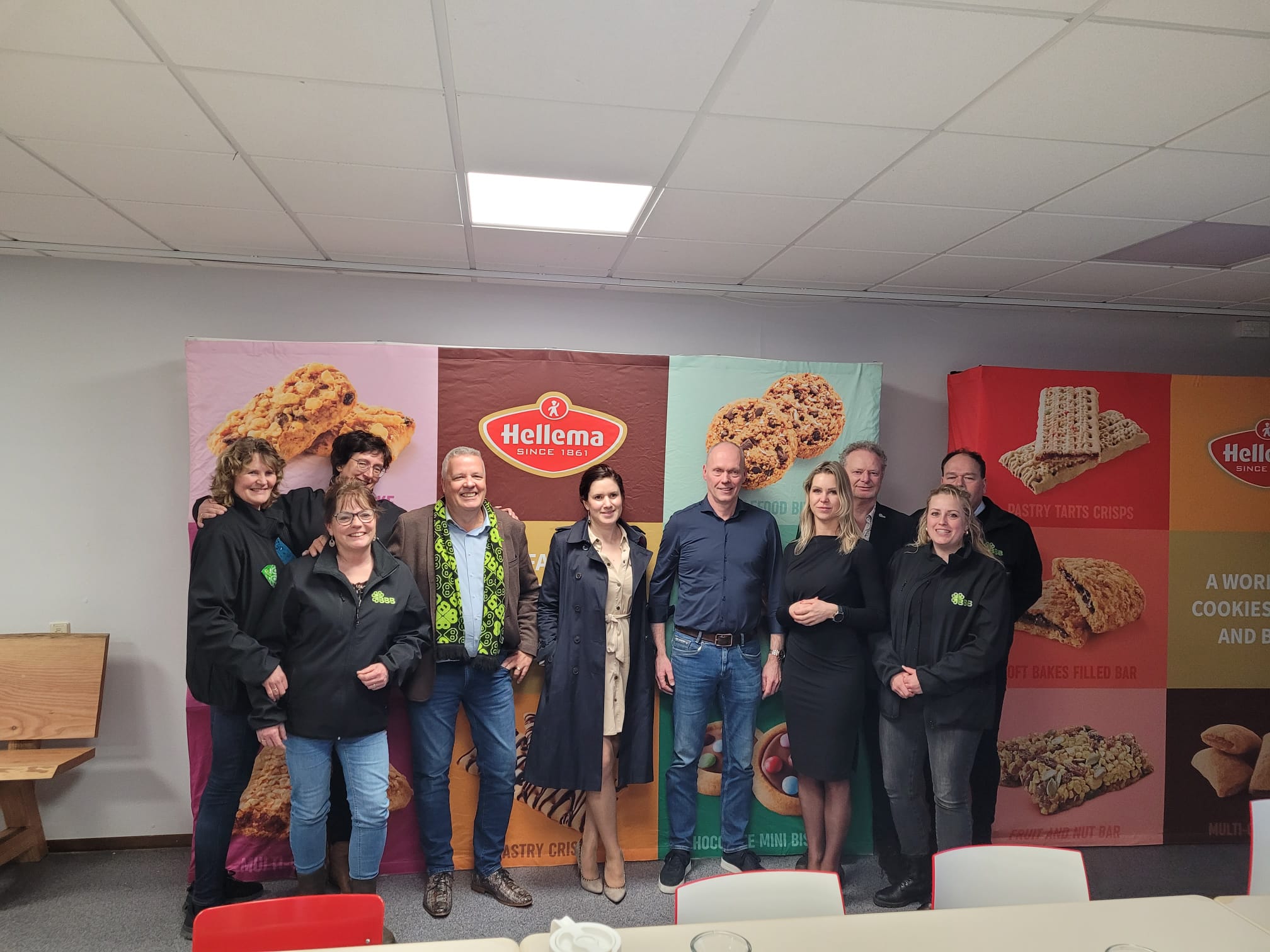 Aansluitend werd een bezoek gebracht aan de koekjesfabriek van Hellema in Hallum. Daar werd een toelichting gegeven op de bedrijfsvoering, actuele knelpunten en de plannen rondom de energie hub, een ontwikkeling waar lokale bedrijven en het dorp zich sterk voor maakt.