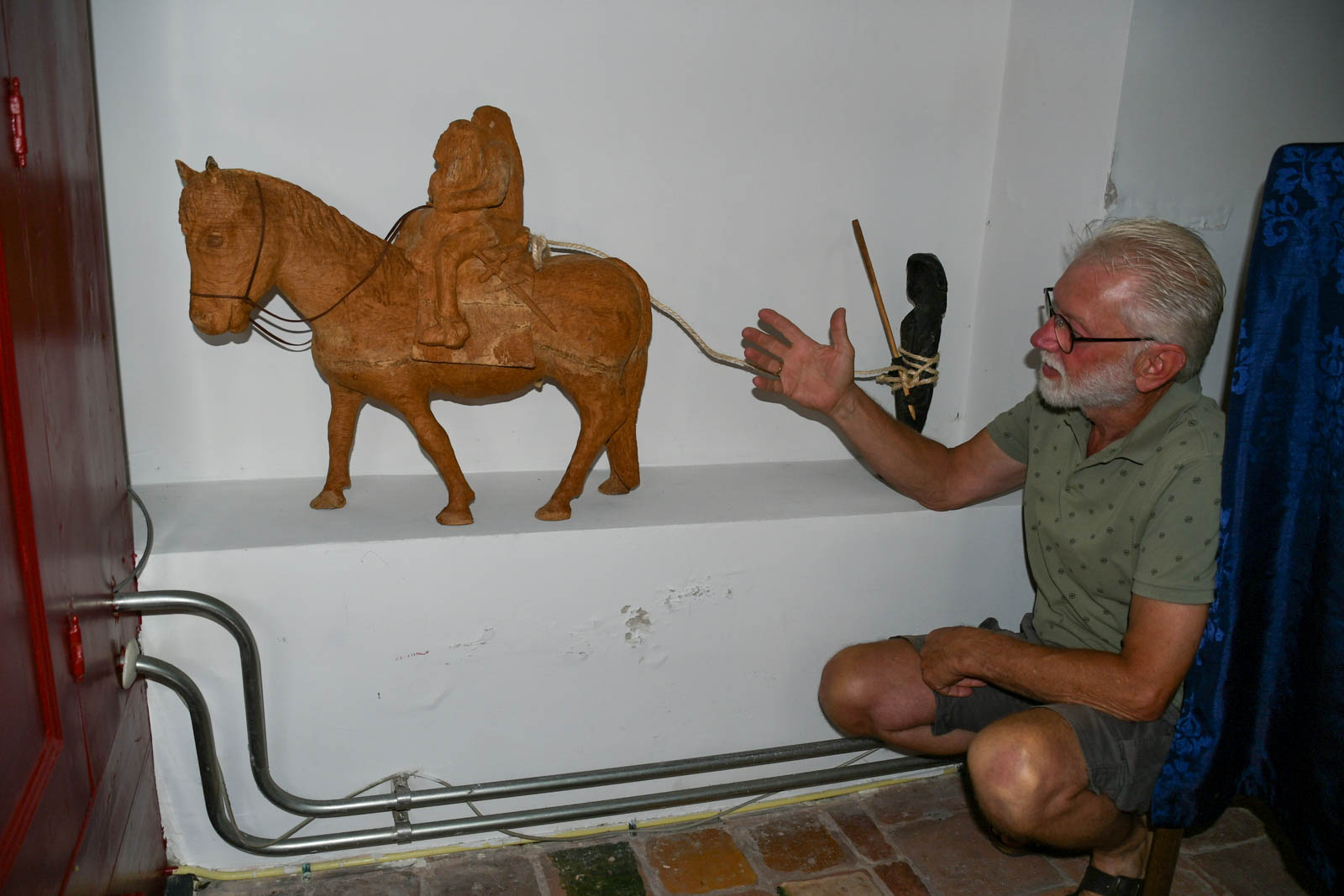 In de kerk van Aldwâld was er naast onder andere de interessante rouwborden een expositie van houtsculpturen van Dick van der Zwaag uit Aldwâld. Deze sculpturen, gemaakt met een kettingzaag, waren allen gebaseerd op Bijbelse thema’s. Over de houtsculptuur met de aardbol gedragen in handen, vertelde van der Zwaag, dat te zien is dat de aarde haarscheuren vertoont en dat wij met elkaar zorg moeten dragen voor de aarde. En de houtsculptuur over Pinksteren met het meisje met de handen omhoog, die open staat voor het woord van God. Ook op 17 augustus zijn deze houtsculpturen nog te bezichtigen. Op 31 augustus zal mevrouw Minke Basteleur (Aldwâld) de kunst van het spinnen demonstreren in de kerk van Aldwâld.