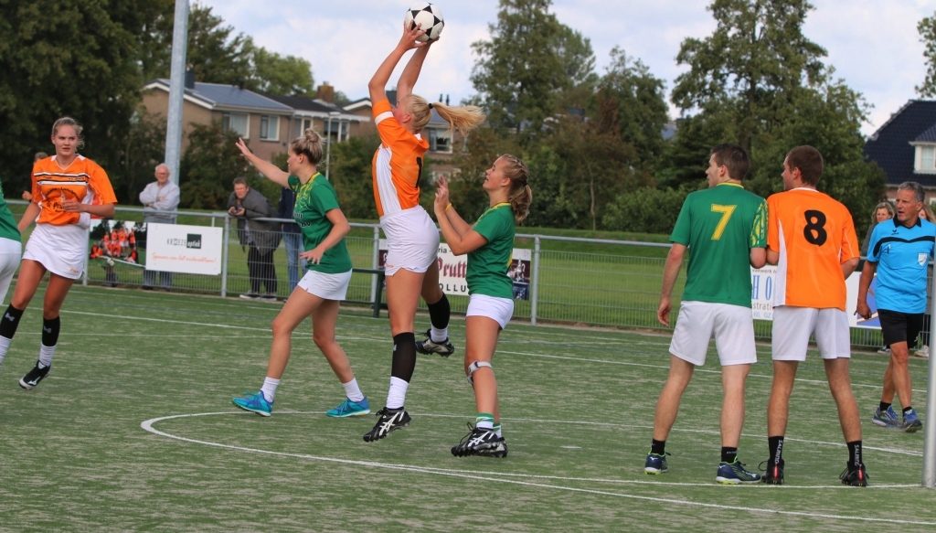 Het was de Pruttelpot-formatie die de score opende, maar daarna wist de Harkemase formatie weer gelijk te maken. Vervolgens ging de eerste helft steeds gelijk op. Waren het de oranjehemden die één doelpunt voorkwamen, dan maakte Harkema weer gelijk en andersom. Geen van beide ploegen wist het gaatje naar twee te trekken en zo werd het een wedstrijd met twee ploegen die erg aan elkaar waren gewaagd. De kleedkamers werden opgezocht bij een 6-6 ruststand.