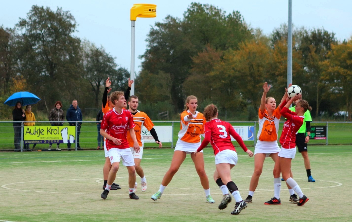 DTS kwam als beste de kleedkamer uit. Door direct na rust twee doelpunten te maken, kwamen de Surhuizumers weer dichterbij. Invicta/Frigro wist via 14-7 en vervolgens via 18-11 weer op zeven doelpunten verschil te komen. Toch kwam DTS in de slotfase terug tot 18-15, maar op dat moment gaf de scheidsrechter al de laatste minuut aan. De Pruttelpot-formatie liet niet het goede spel van de eerste helft zien, maar wist uiteindelijk te winnen met 19-15.