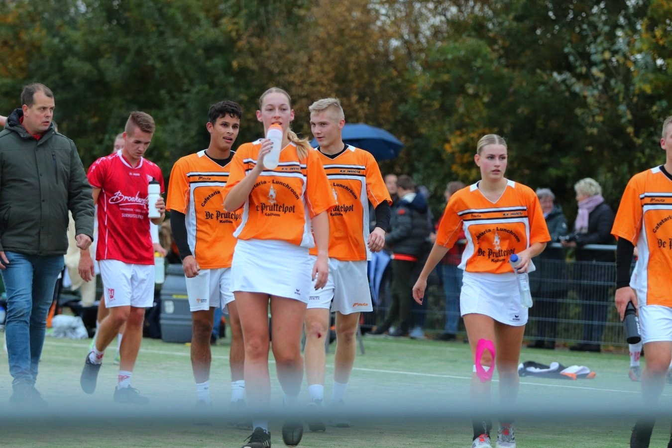 KOLLUM – Onder herfstachtige weersomstandigheden stond op zaterdag 31 oktober 2021 de wedstrijd Invicta/Frigro 1 – DTS 1 op het programma op sportpark Baensein in Kollum. Dit betekende de laatste veldwedstrijd voor het begin van het zaalseizoen. Coach Johan maakte de spelers erop attent dat de vorige twee wedstrijden tegen DTS verloren werden. Het was zaak om scherp aan de wedstrijd te beginnen.