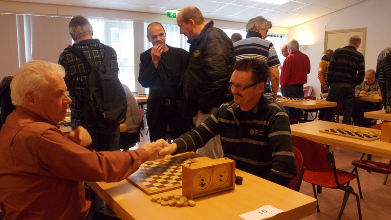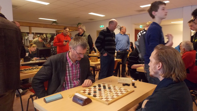 De deelnemers kwamen uit heel het land een zelfs eentje uit België, het moge dus duidelijk zijn: het hepie koelstra Rapiddamtoernooi geniet een warme belangstelling bij veel beoefenaars van de damsport! Even na 10.00 uur werd het toernooi geopend door voormalig sterkste man van Nederland, “Tjalling van den Bosch” uit Achlum, naast dat Tjalling een goeie dammer is, staat hij als ceremoniemeester ook zijn mannetje, een lust voor het gehoor. Na de warme welkomstwoorden kon de strijd op de 36 borden losbarsten, er werden 7 ronden gespeeld met 25 minuten per speler, per partij, op de klokken, aan spanning ontbrak het niet in de 3 versvhillende catagorieën, alleen in de A klasse stak één speler met kop en schouders boven de rest uit, titelverdediger Jean marc Ndjofang uit Luik liet al in een vroeg stadium ziin belagers de hielen zien, in sneltrein vaart reeg hij de ene overwinning na de andere aaneen, pas in de allerlaatste ronde nam “El Animal”wat gas terug middels een salonremise tegen Johan Taeke Dekker!