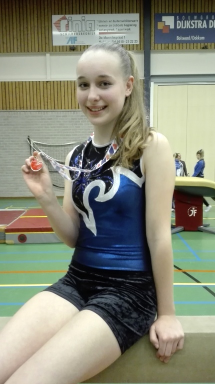 De strijd om de Friese titel kon beginnen. Jenny werd zowel bij de balk als bij de brug 1e. Door deze hoge klappers was ze onverslaan voor de rest. Ze nam het goud mee naar huis en mag zich Fries Kampioen noemen! Ook de andere dames hebben goede wedstrijden gedraaid.