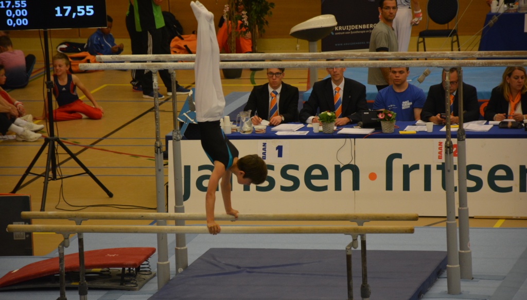 Zaterdag 11 juni stond de meerkamp op het programma. Joris opende zijn wedstrijd op het onderdeel vloer een strakke en nette oefening werd er neergezet. Hij behaalde een score van 18,05. Het volgende onderdeel was voltige. Zijn netste oefening van het seizoen werd vandaag geturnd. Hij behaalde een hoog cijfer van 17,05. Ook op de onderdelen ringen, sprong en brug verliepen netjes. Het laatste onderdeel was rekstok helaas ging het hier mis. Hij vergat een onderdeel te turnen wat hem veel kostbare punten koste. 5 maart jl. stonden er aan de start van dit seizoen 108 jongens aan de start op allemaal die ene gouden medaille in de wacht te slepen. Joris heeft erg veel jongens achter zich gelaten en werd vandaag 11e van Nederland.