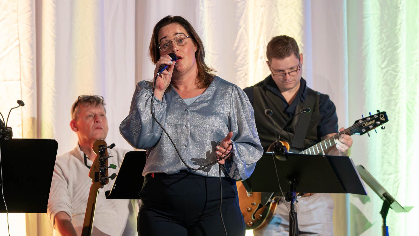 Het moest een feest voor de Heer worden en dat is het ook geworden. Dit past helemaal bij de doelstelling van de groep, nl. met zang en muziek getuigen van het evangelie van Jezus Christus. Voor deze bijzondere gelegenheid was het muzikale combo uitgebreid met o.a. oud-comboleden, wat zeker bijdroeg aan de feestvreugde. Het programma was gevarieerd, met een mooie mix van oude en nieuwe nummers.