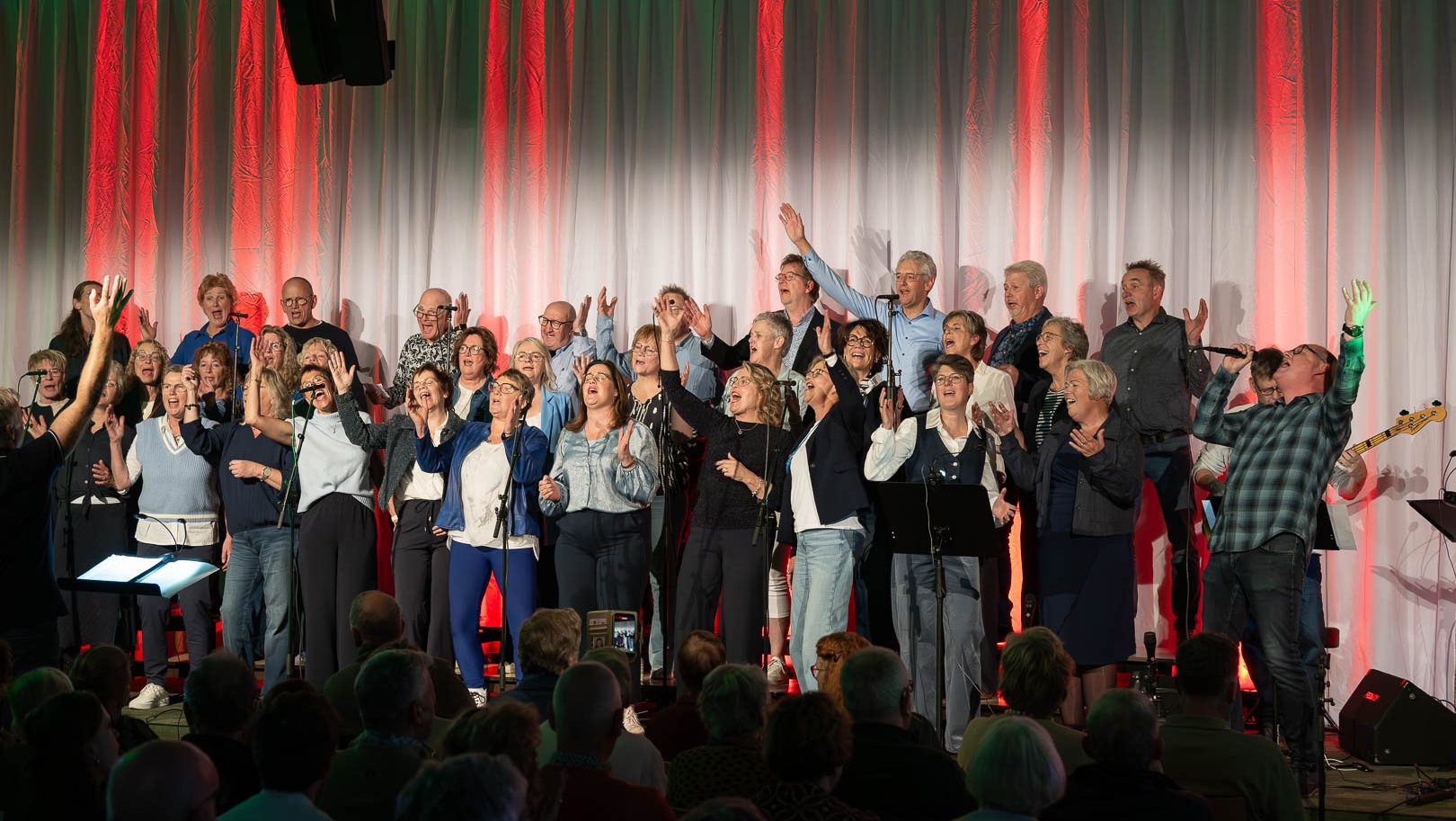 DOKKUM – Gospelgroep De Regenboog vierde zaterdagavond 8 november haar 40-jarig jubileum met een feestelijk concert in De Oase, het gebouw van de Christelijke Gereformeerde Kerk te Dokkum. Het werd een avond vol muziek, dankbaarheid en geloofsblijdschap. De kerk was tot de laatste stoel bezet en al vanaf het eerste lied straalde de groep van energie en plezier.