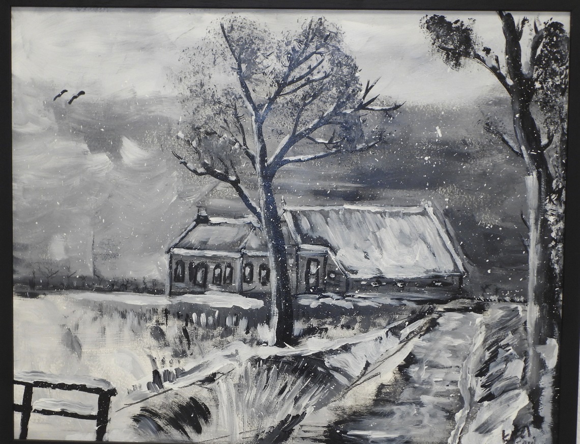Karel Flanderijn (1953, Zeegse) werkt in boerderij ‘Warkstee’ in Adorp aan schilderijen met acrylverf. Mijn werk bestaat voornamelijk uit landschappen, stads- en dorpsgezichten. Na een hersenbloeding in 2008 kon ik de wereld niet meer waarnemen zoals hij was. Hemianopsie is een aandoening waarbij met beide ogen het gezichtsveld beperkt wordt. In mijn geval precies de linkerhelft.