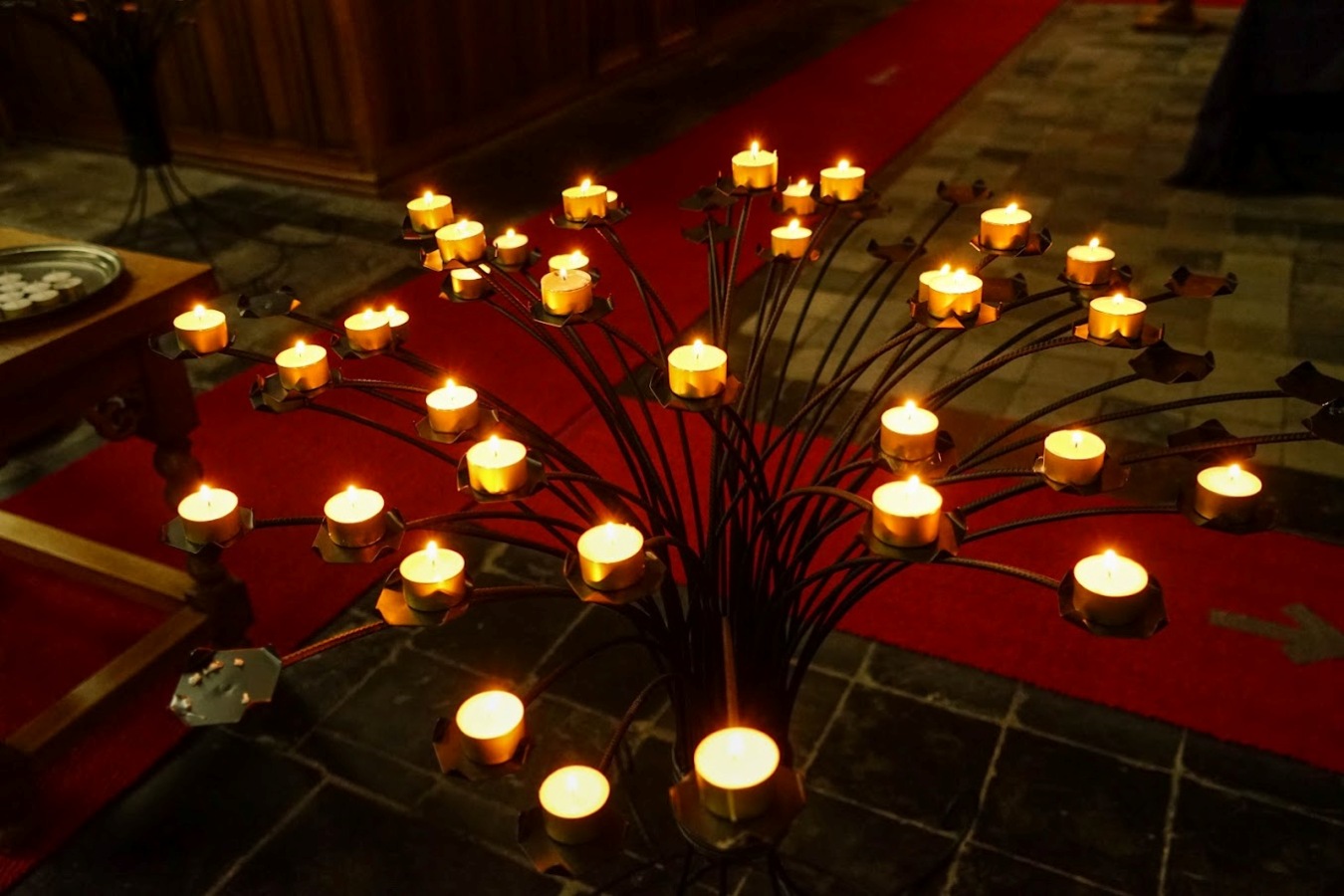 Kaarsjes aansteken voor een dierbare in de Maartenskerk in Kollum