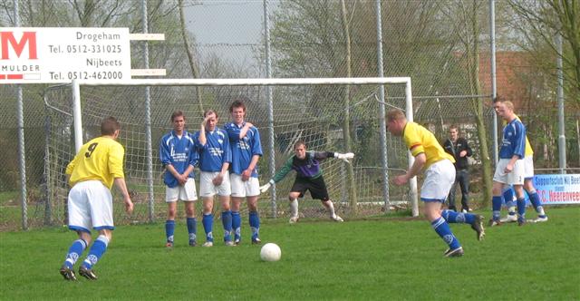 VIOD kreeg vlot hierna een corner te nemen, Johan Tolsma nam plaats achter de bal en schoot deze in een keer bij de tweede paal binnen 1-1. Net voor de thee kwam VIOD zelfs op voorsprong toen weer Johan Tolsma doelpunte, vanuit een vrije trap wist hij de bal snoeihard langs de muur in de hoek te plaatsen 1-2. VIOD begon ongewijzigd aan de tweede helft, waarin wederom Blue Boy’s beter uit de verf kwam. De voorwaartsen van Blue Boy’s waren vandaag niet scherp en anders stond man van de wedstrijd Pieter Meindertsma wel op de juiste plaats. Hij wist op ludieke wijze tot 2 maal toe de bal op de lijn te keren. In de 65ste minuut kwam Martin Dijkstra in het veld voor Pieter Ele Kuitert. VIOD kon vandaag niet imponeren en de mannen uit NijBeets konden daar niet van profiteren.