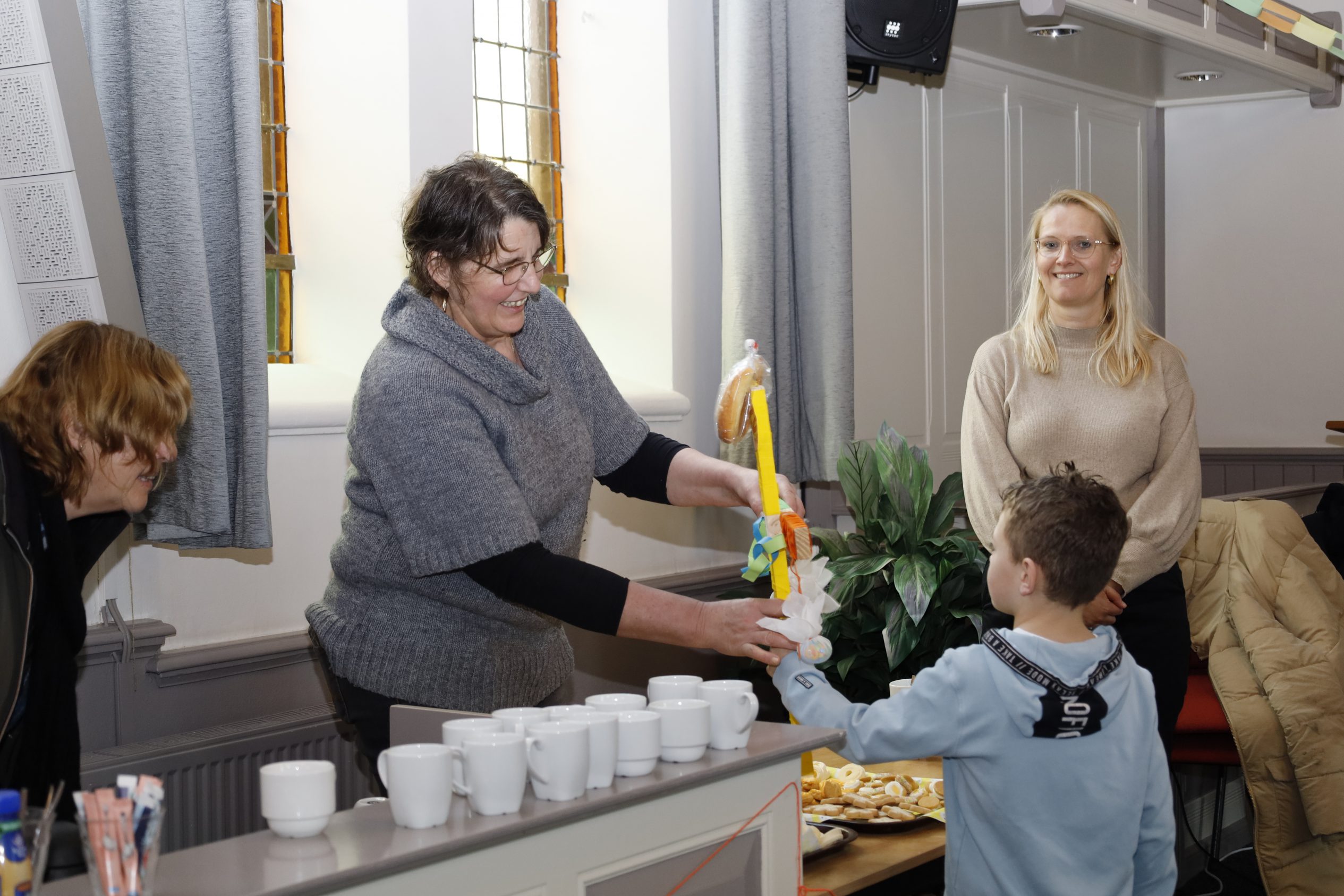 Na de viering werden de kinderen getrakteerd op ranja en lekkernijen, terwijl de bezoekers en ouderen genoten van koffie en versnaperingen. Meerdere vrijwilligers brachten de bovenbouwleerlingen vervolgens met de auto naar verschillende adressen, waaronder Dokkum en Foudgum, om palmpaastakken te bezorgen aan mensen die zelf niet naar de kerk toe konden komen.