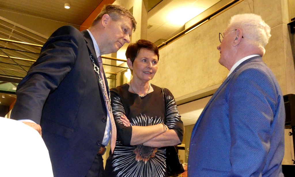 Veel belangstelling op donderdagavond bij de kennismakings – bijeenkomst in het gemeentehuis te Damwâld, van burgemeester Klaas Agricola en zijn vrouw. Ook was aanwezig entertainer Teake van der Meer uit De Westereen, alias Lytse Teake.