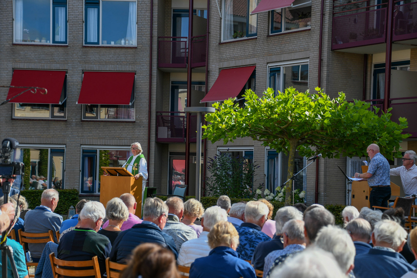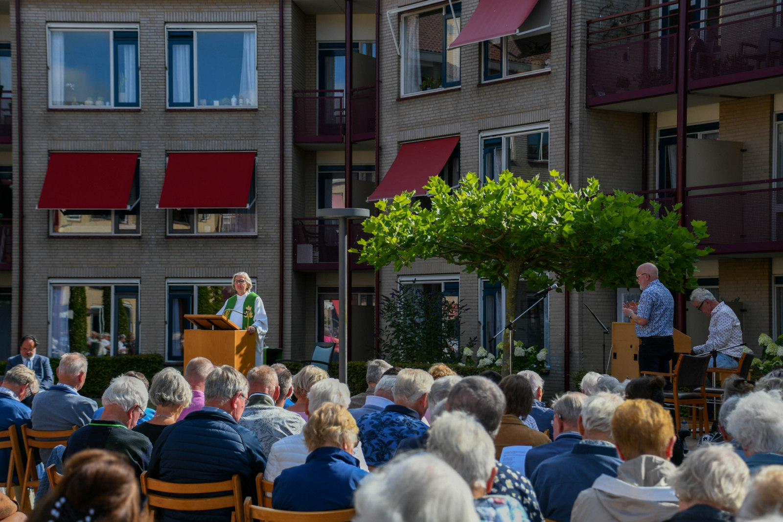 KOLLUM – Zondagochtend 7 augustus kwamen voor de vierde keer veel gemeenteleden van de protestantse Gemeente te Kollum onder ideale weersomstandigheden bijeen in de binnentuin van verzorgingstehuis Meckama State.