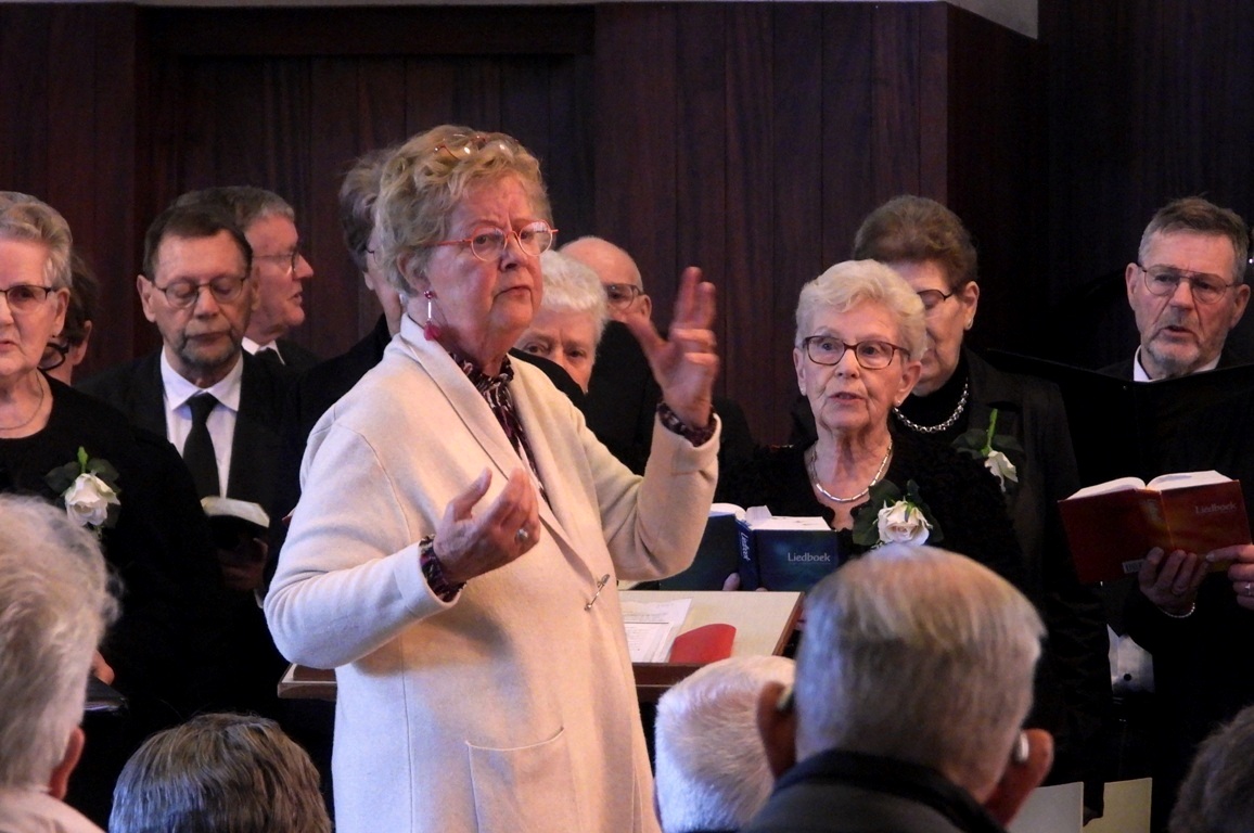 Hierna volgde de overdenking. Na de overdenking volgde orgelspel door Rudolf Huizenga. Samen met de gemeente zong het koor “Licht dat ons aanstoot in de morgen”. Het koor zong voor en tijdens de collecte “Be still and know that I am God”, “Heit wol hearre as wy bidde” en “Hoor Gij ons aan”. Met het zingen van het slotlied “God roept de mens op weg te gaan” kwam een eind aan een warme, uitnodigende dienst, om aan de slag te gaan.