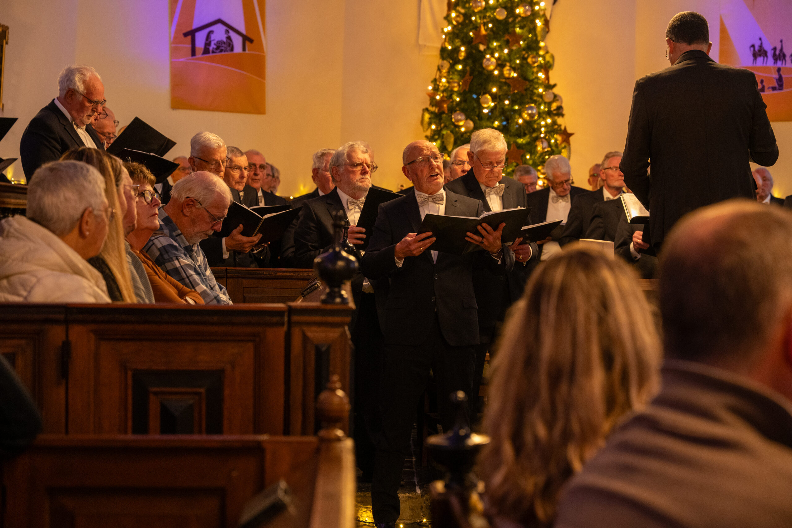Het koor opende met Kryst yn Fryslân, waarna het programma in vijf blokken werd uitgevoerd. In het eerste blok klonken onder meer Herders in ’t veld van Efratha en Vrede. De samenzang Gezang 135 ‘Hoor, de eng’len zingen de eer’ werd door het publiek krachtig meegezongen. In het tweede blok volgden klassiekers als O heil’ge nacht, Stille nacht en I love You Lord. Een orgelintermezzo zorgde voor een mooi rustpunt in het programma.
