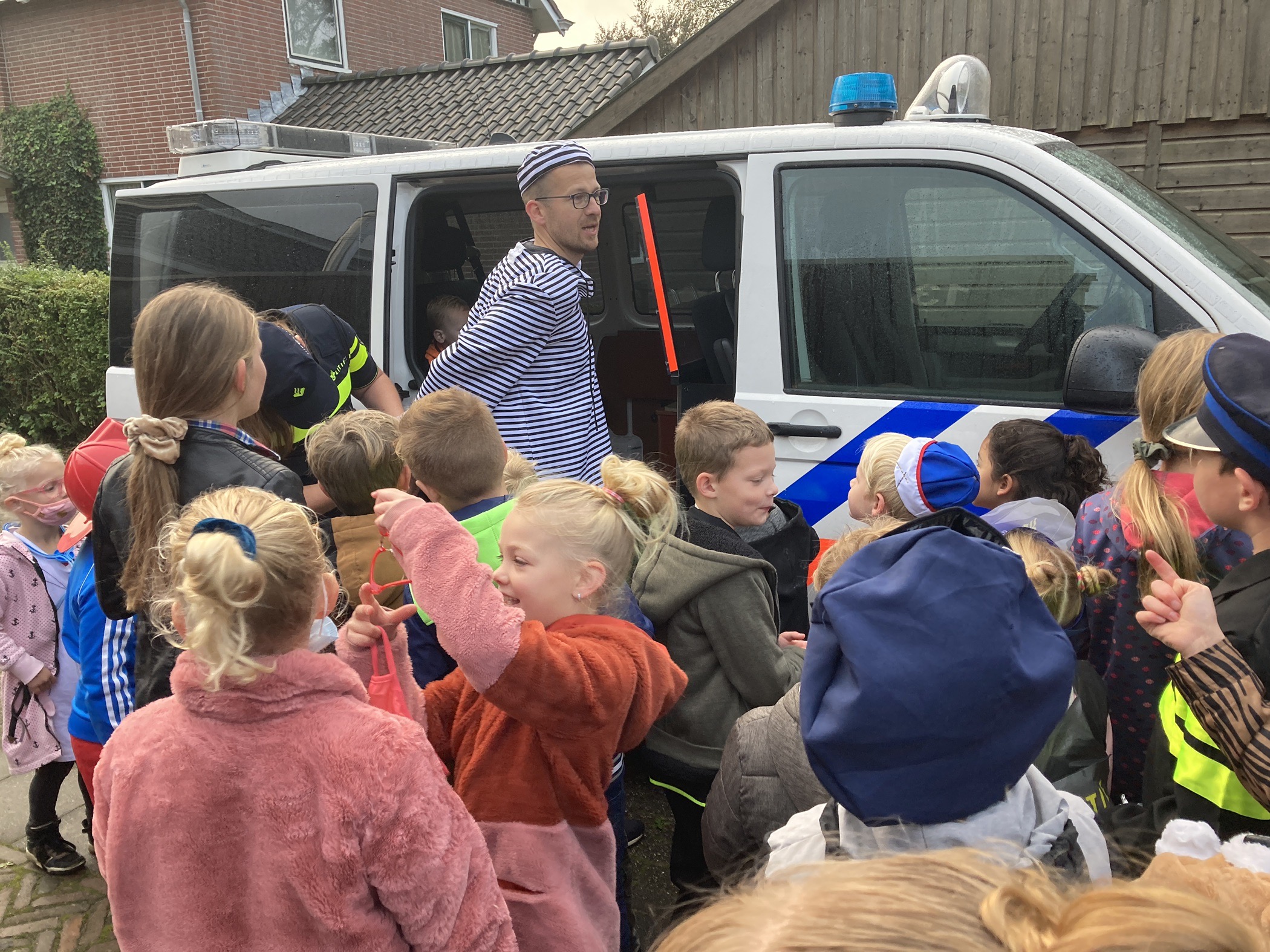 De letterdief liet zich zien en werd in de boeien geslagen door de politie, omdat hij de vermiste letters had. Gelukkig werd de lettterdief weer vrijgelaten. Het alfabet is weer compleet en de kinderboekenweek kan van start gaan. Later op de ochtend vertelde de politie in de stamgroepen nog over het beroep en mochten de kinderen een kijkje nemen in de politiebus.