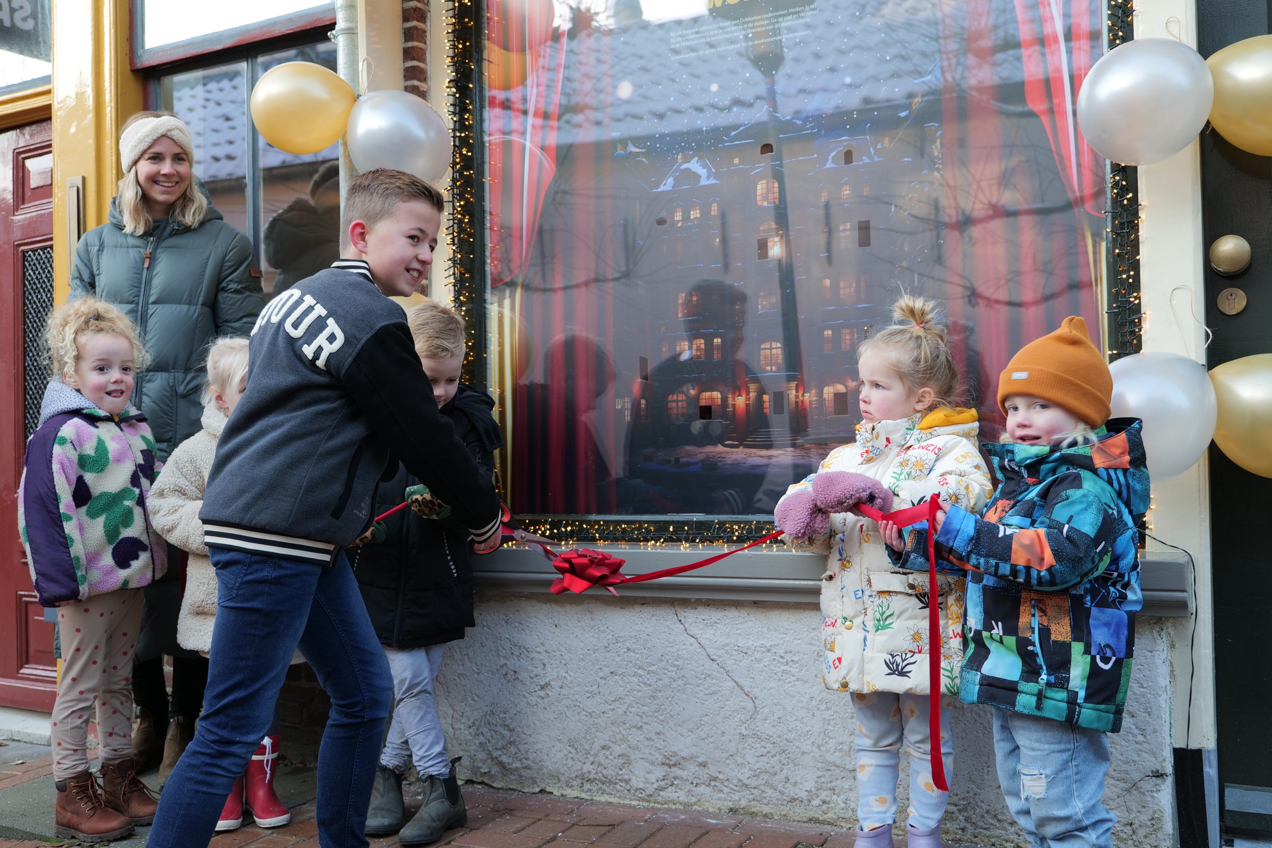 Kinderburgemeester Ruben van der Veen heeft vandaag met veel enthousiasme het dierenhotel officieel geopend, terwijl aanwezige kinderen het lint vasthielden dat Ruben doorknipte. Dit creatieve project is een initiatief van marketingbureau Geen Saus, dat ook gevestigd is in het Druivenstraatje. Annemijn Filius van Geen Saus vertelt: “We wilden de kinderen in de regio Dokkum een leuke winteractiviteit bezorgen. Een betoverend huis gecombineerd met een speurtocht leek ons perfect!” Femke Dijkstra van Geen Saus voegt toe: “We hopen dat ouders ook actief meedoen met het speuren en tegelijkertijd zien wat de ondernemers in het centrum van Dokkum te bieden hebben. Ondersteun de lokale ondernemingen en geniet deze winter van de gezelligheid in Dokkum!”