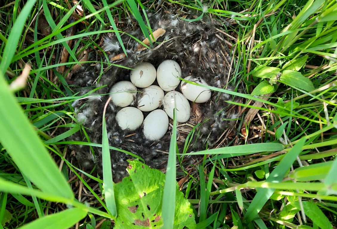 Luid schreeuwend boven de hoofden van de kinderen, lieten de vogels zich horen. We vonden dan ook veel nesten waar lege eischalen in lagen. Vaak van de grutto, of door sommige kinderen ‘bruto’ genoemd. Deze werden als trofee meegenomen door de kinderen. Ook een nest met 2 jonge tureluurs die net uit het ei waren, was een prachtige vondst. Verder hebben we diverse nesten van de wilde eend, scholekster en meerkoet gevonden. Een ander groepje konden zien hoe een jonge grutto net uit het ei kruipt. Weer een andere groep kreeg naast de jongen en nesten nog een mooi ree te zien die door het hoge gras sprong. Ook de pompen in het veld om de plas-dras gebieden onder water te houden, waren interessant.