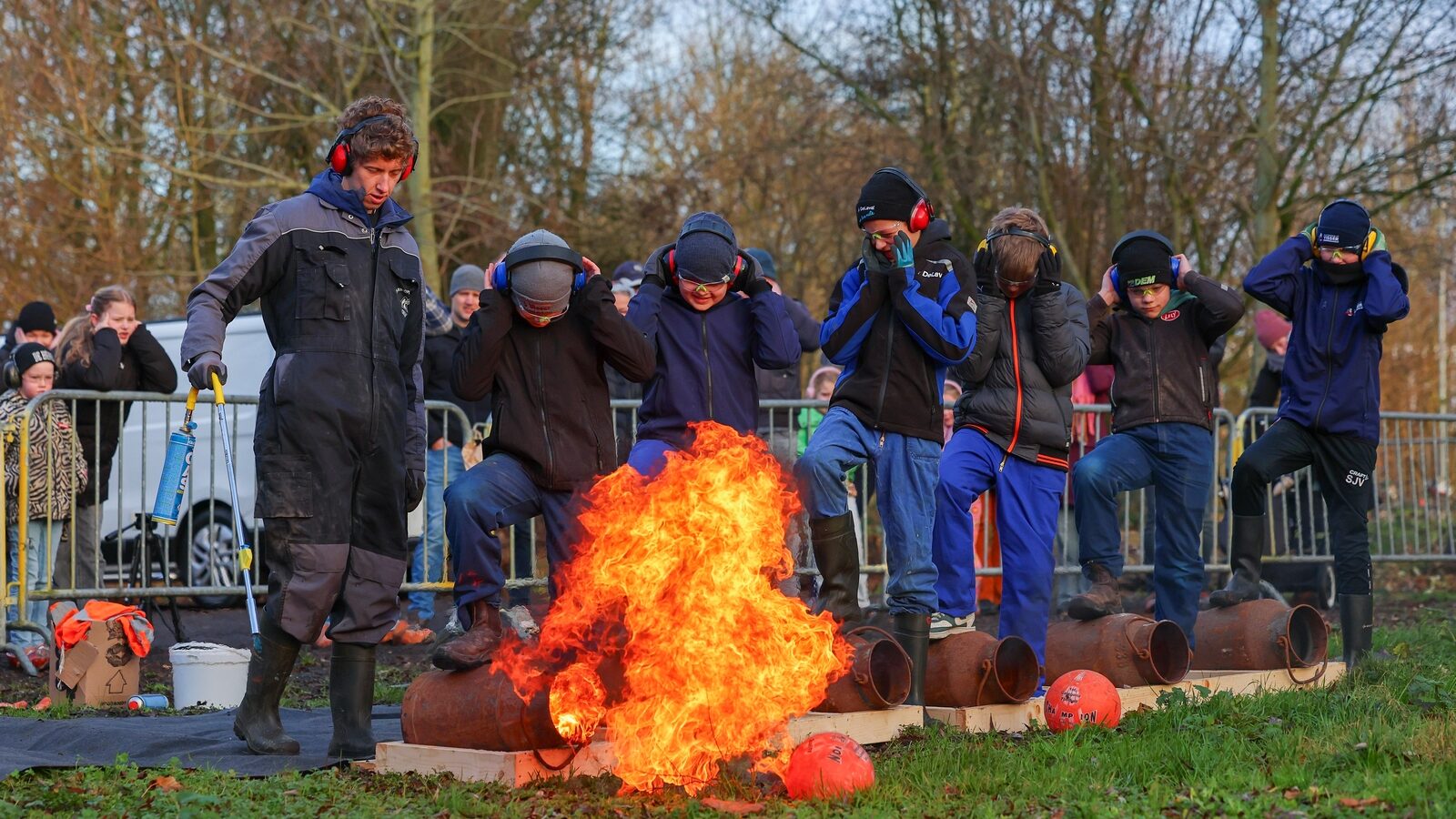 Het is mooi, maar ook belangrijk om de kinderen te laten zien hoe het werkt en hoe je veilig schiet, legt Gerlof Kooistra van de Carbidploeg Ee uit. “It idee kaam fanút doarpsbelang en doe ha se tegearre betocht, ek omdat de jeugd it ek goed leare moat, om foar groep seis, sân en acht dit te organisearjen. We lizze it dan goed út, mar foaral ek: hoe dogge je it feilich.”