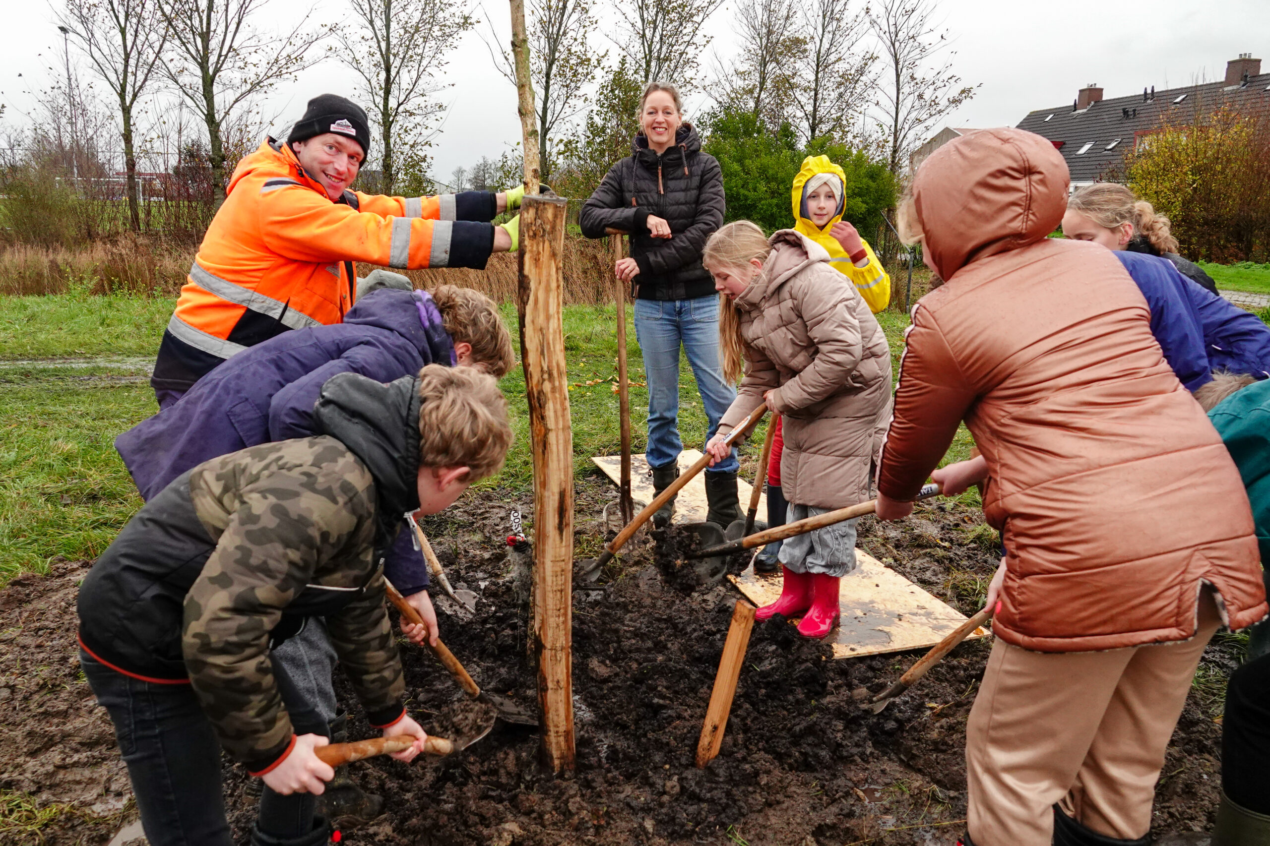 REGIO – Op woensdag 19 november plantten meer dan 40 kinderen van CBS De Welle en CBS de Tarissing bomen in het kader van Nationale Boomfeestdag. De kinderen deden dat samen met wethouder Hanneke Jouta van Noardeast-Fryslân en wethouder Kees Wielstra van Dantumadiel in hun dorpen, Burdaard en Rinsumageast. De kinderen ontdekten tijdens de gastles dat het leven met bomen om je heen gewoon veel lekkerder is! Dit was tevens het thema van de nationale Boomfeestdag.