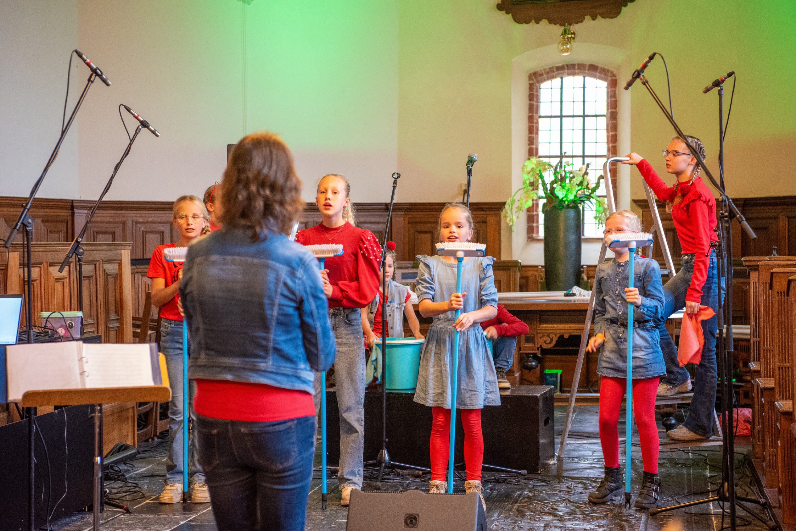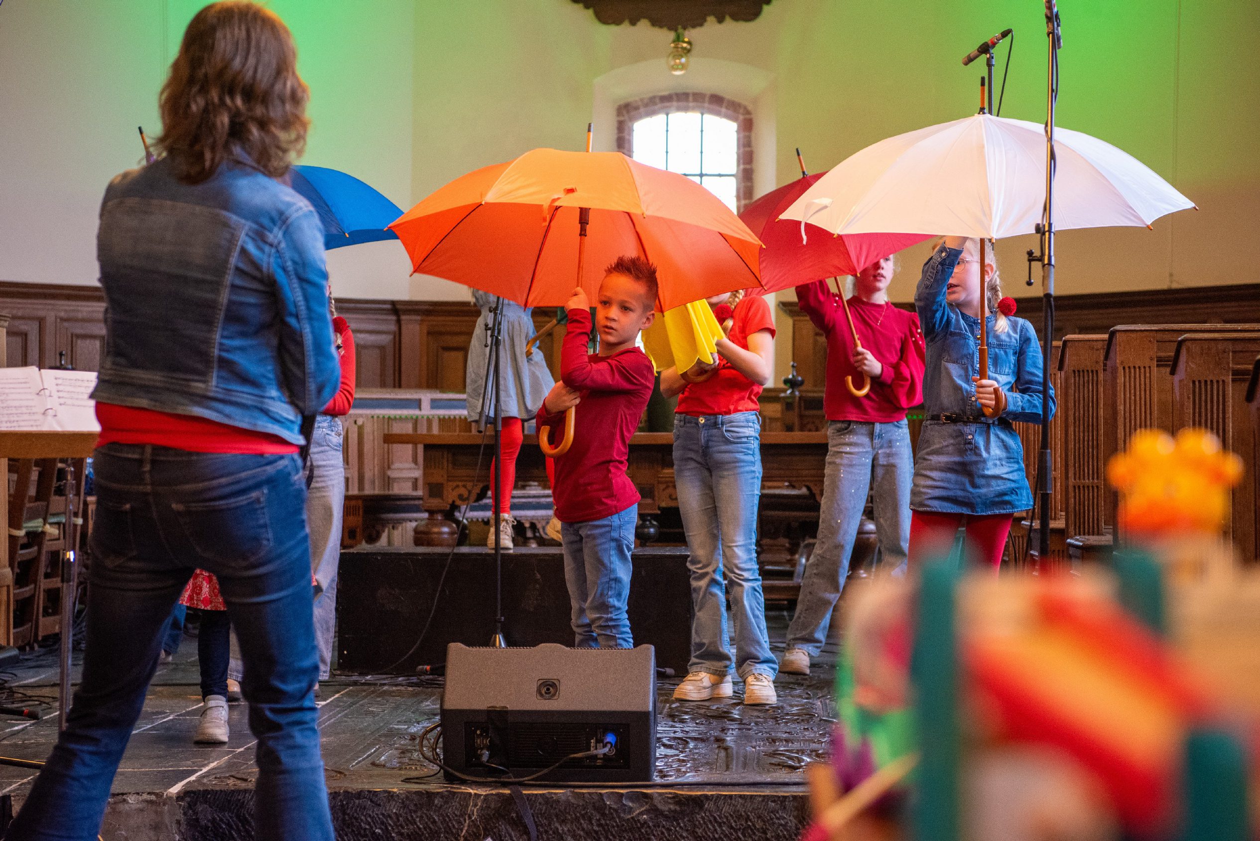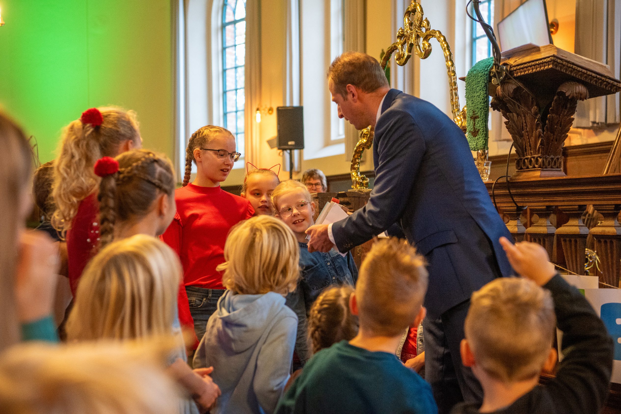 De gezellige dienst werd geleidt door dominee Wiebe Feddema en muzikaal omlijst door kinderkoor de Blide Sjongers.